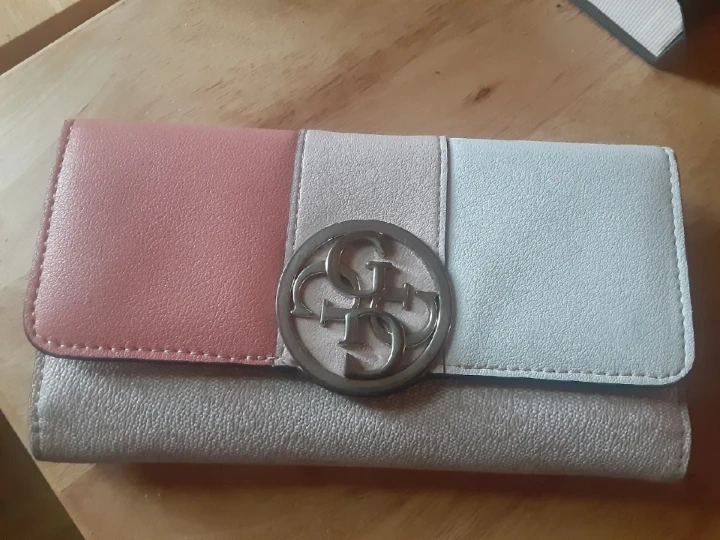 Selling a Guess tri-fold wallet in great condition! It features a stylish design with multiple card slots and compartments to keep your essentials organized. The wallet has a secure closure and the iconic Guess logo on the front. Perfect for everyday use!
