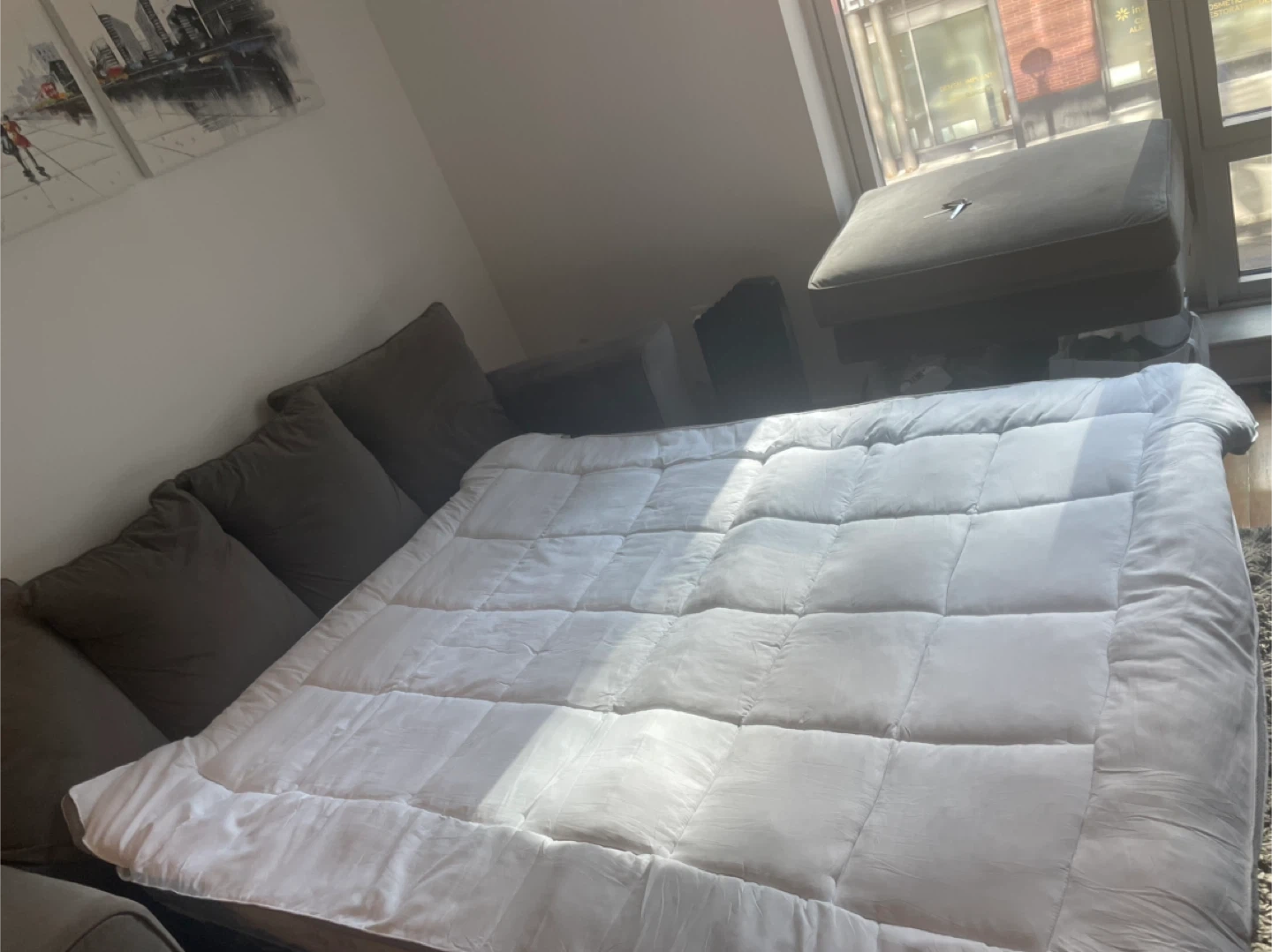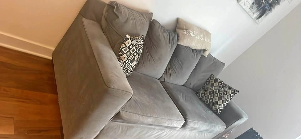 Nice 3-seater sofa, 87"L x 35"W x 27"H. Can be turned into a bed. Feel free to message if you have any questions!