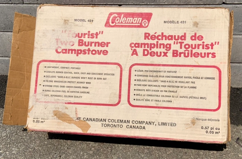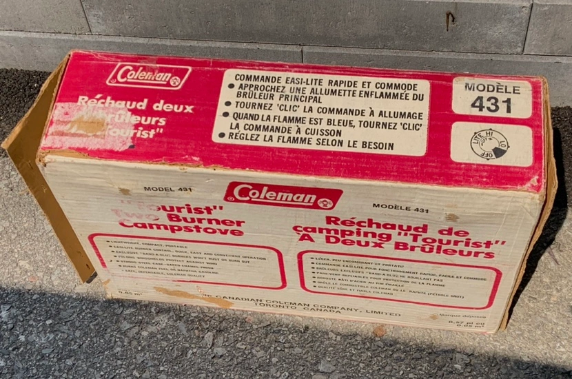 Vintage Coleman Camp Stove 431 2-Burner Easi-Lite 14000 BTU Made in Canada with original box.