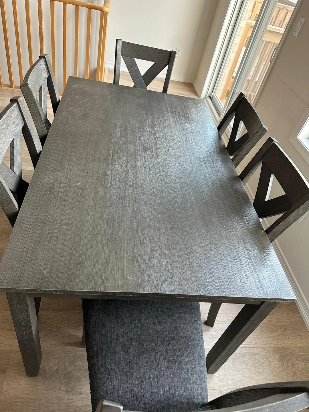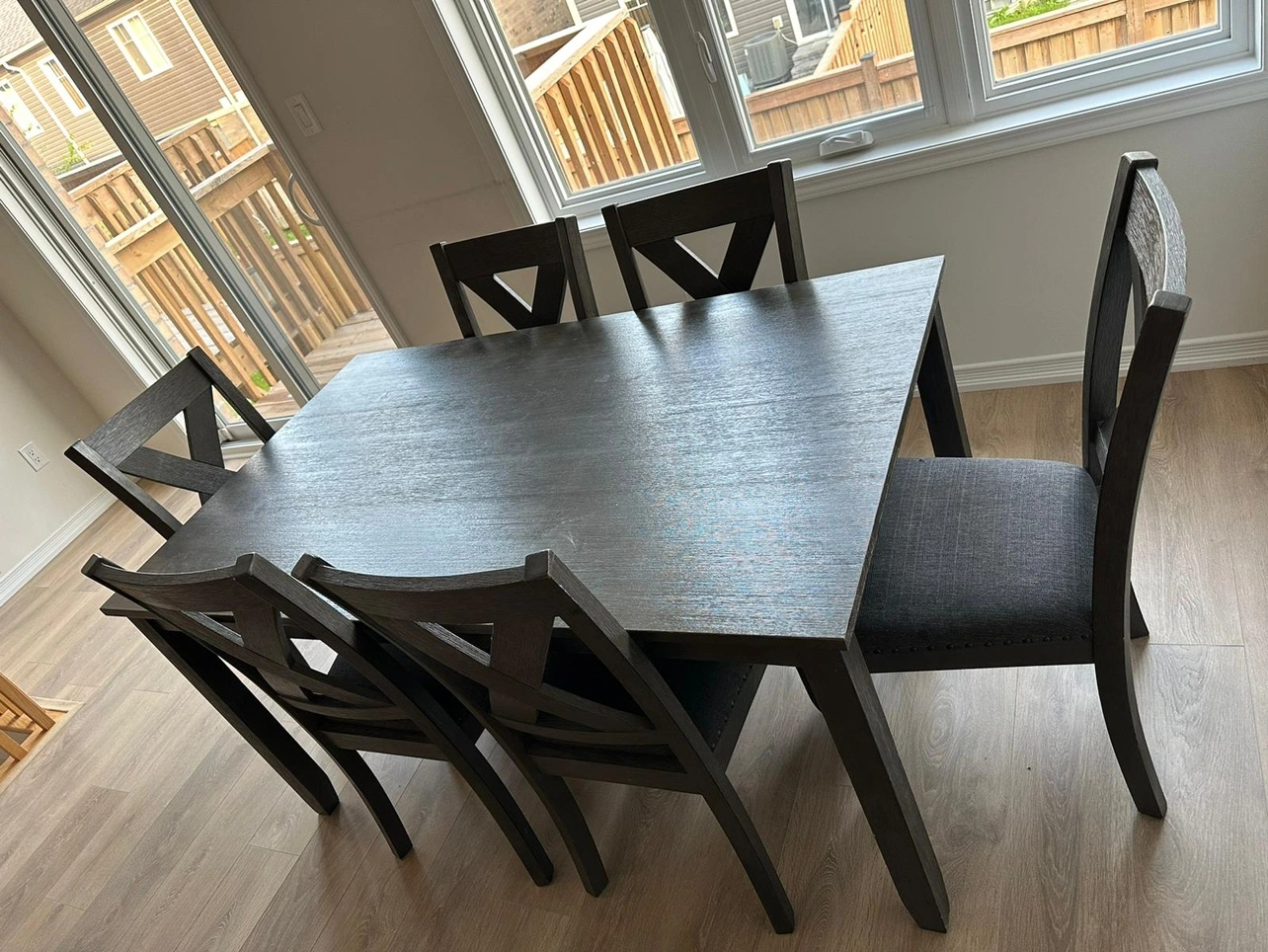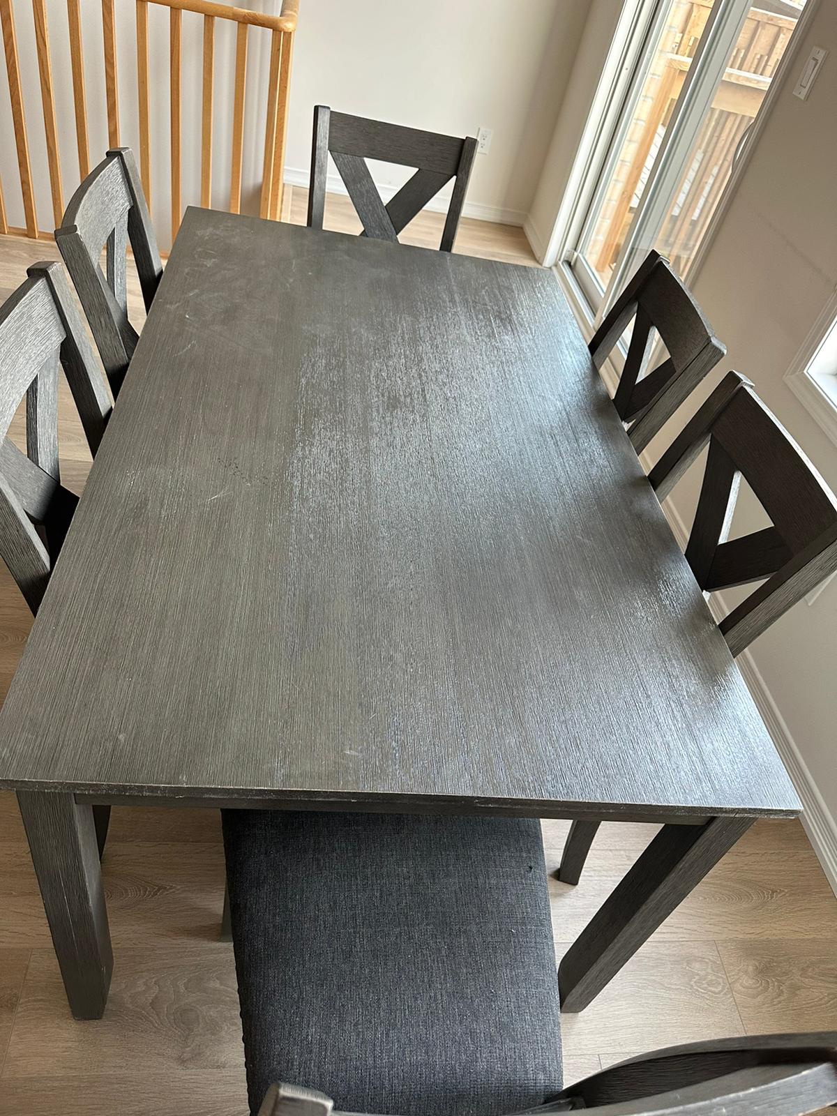 *Beautiful Grey Wood finish furniture with rim studded cushioned chairs