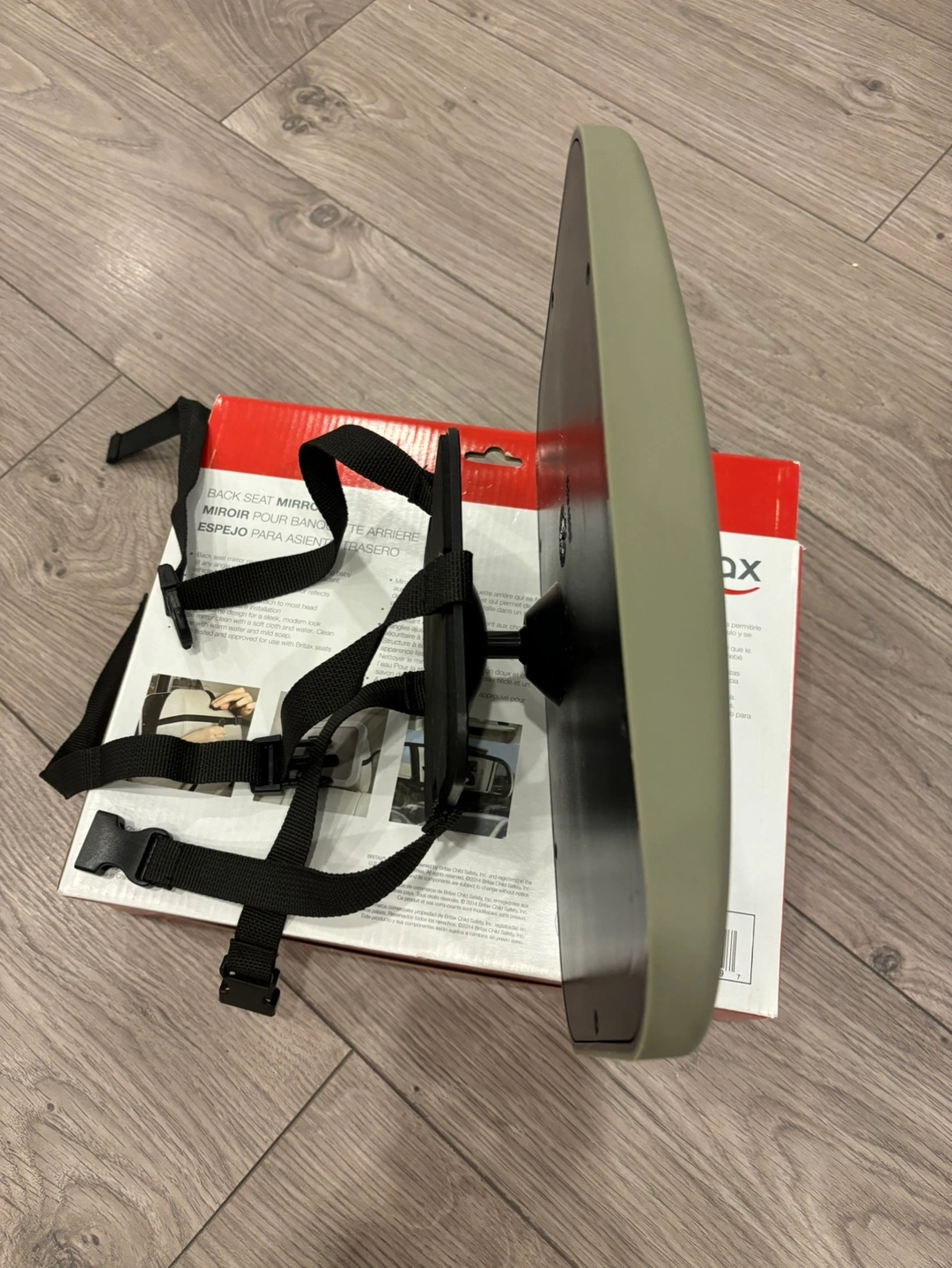 Shatter-proof, extra large convex mirror reflects head-to-toe view of your child. Clear view, easy installation, designed for safety, modern look. 7.5 x 3 x 11.5 inches, 1 pound. Back seat mirror pivots to view your rear-facing baby at any angle while allowing installation to adjacent vehicle head restraints.