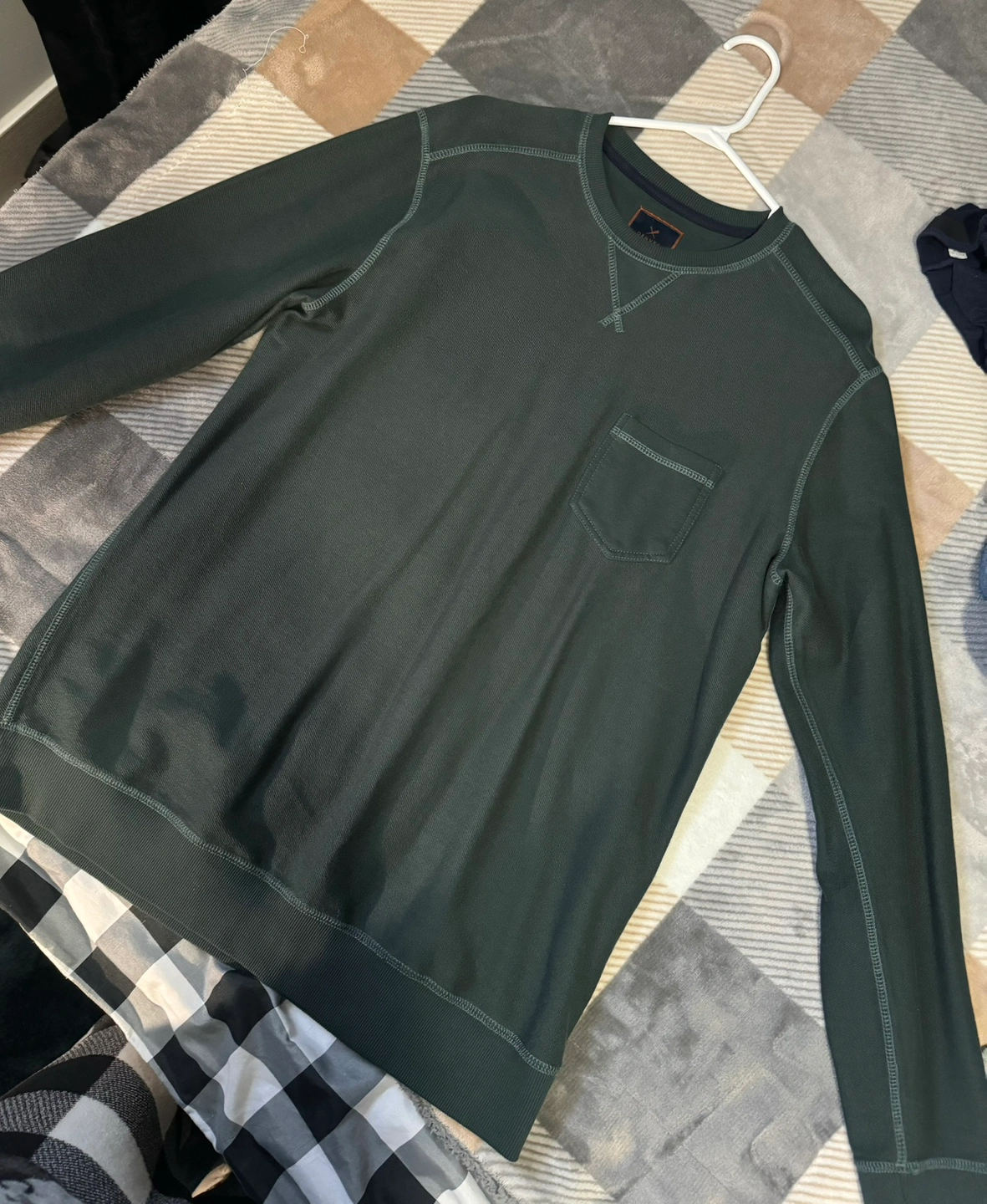 Denver Hayes Men's Long Sleeve Reverse Twill Crewneck Cotton Top
