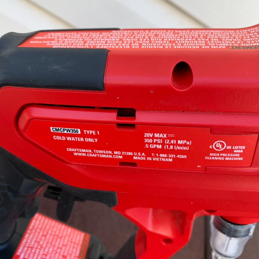 CRAFTSMAN Cordless Pressure Washer Spray Gun,350 Max PSI