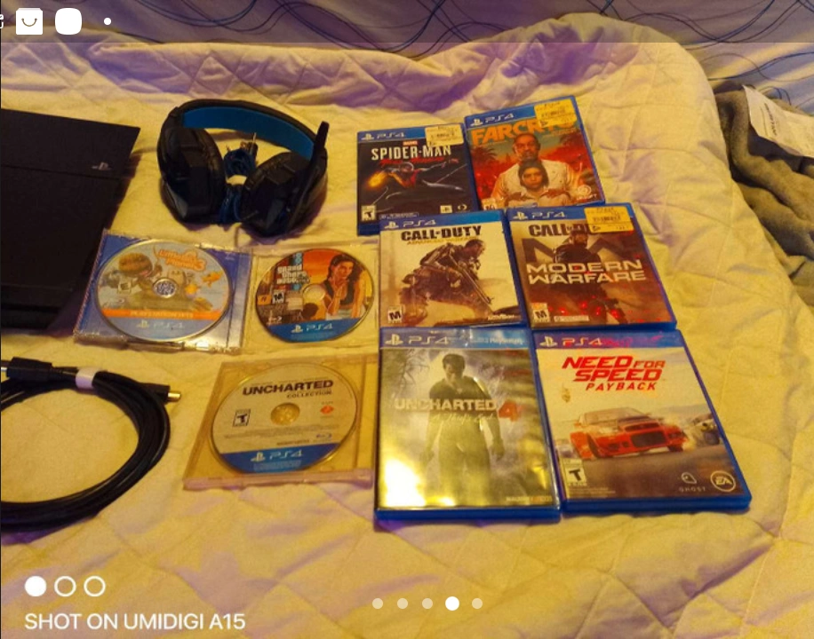 I have a PS4 that has been used only five times then I got bored of it and it's been sitting there ever since just hooked it up and did a update on it so it's all up to date now and it's factory reset also have lots of games to choose from for $230 also includes a headset and a controller with power cable for remote and system also HDMI cable everything you need to start gaming