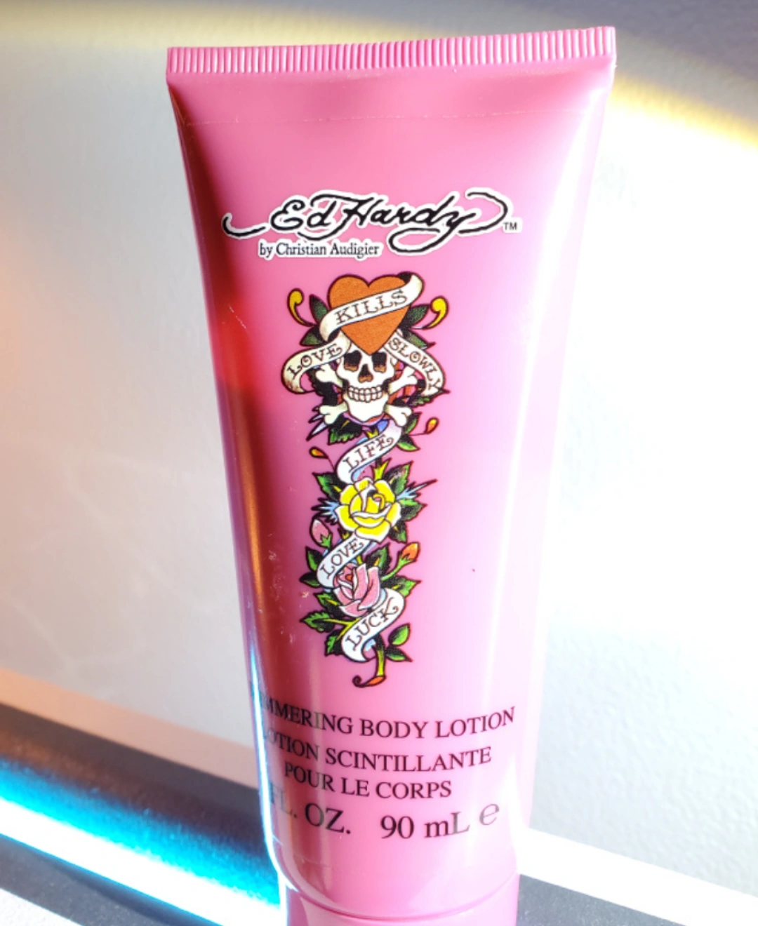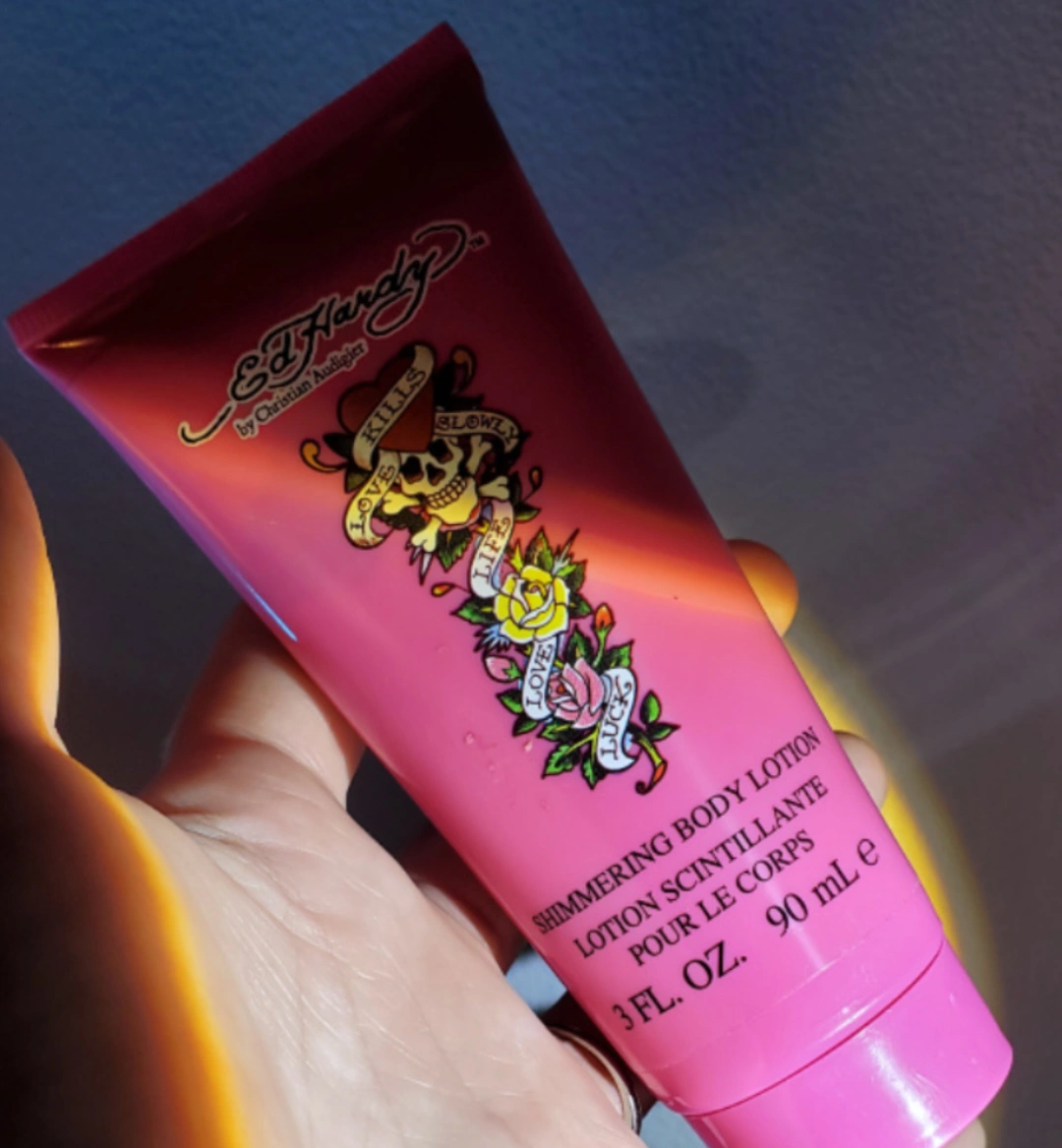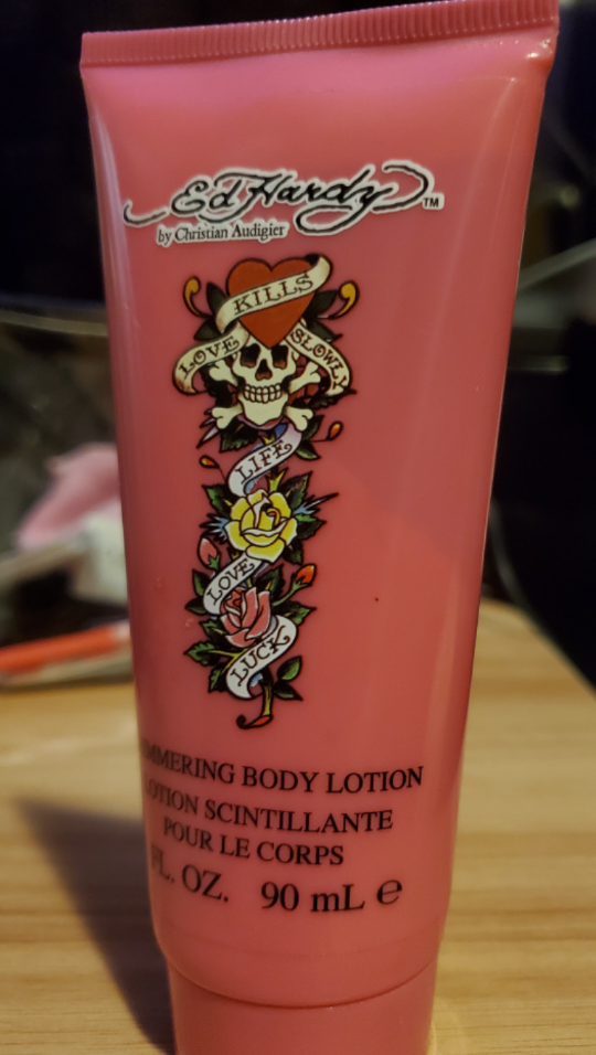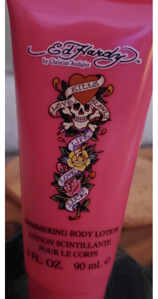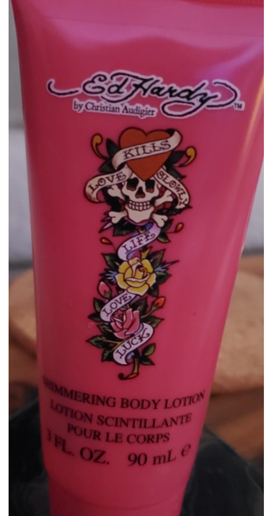 An Ed Hardy (Life~ Love~ Luck~) scented body lotion with a light ✨️ shimmering effect 🌟 on the skin- great for summer!!