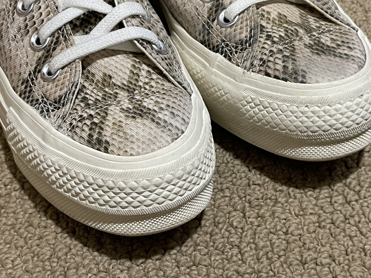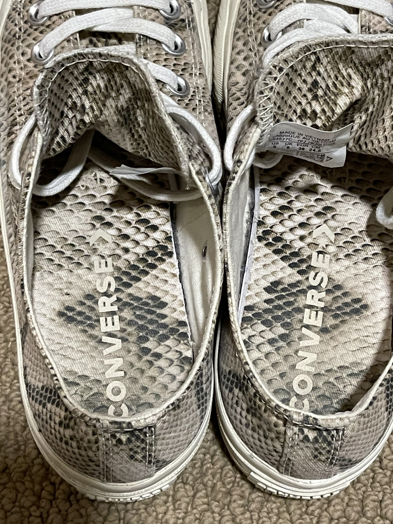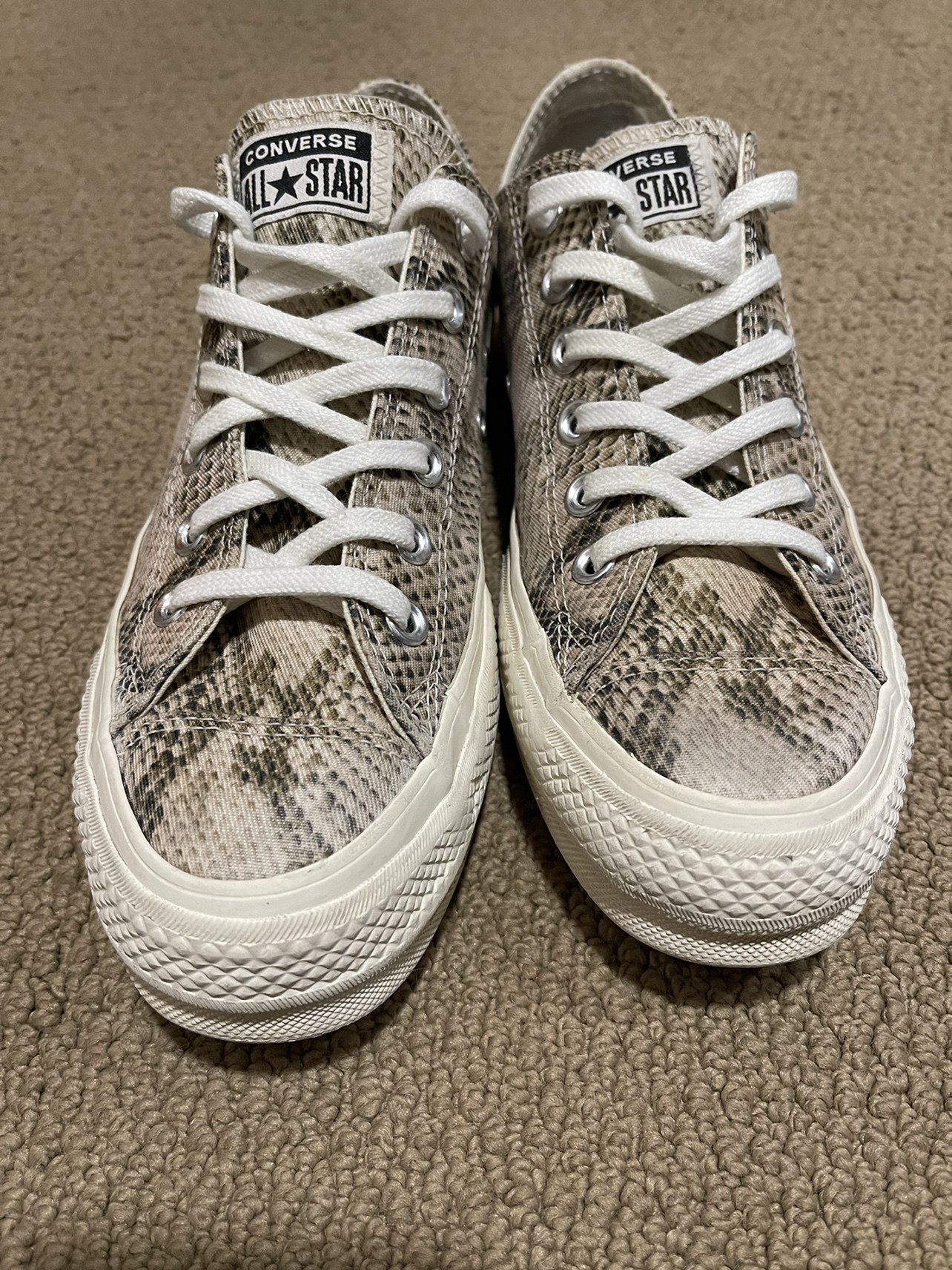 This pair of platform style Converse have barely been worn. They have a snakeskin style print. Women’s size 8. First come first served.