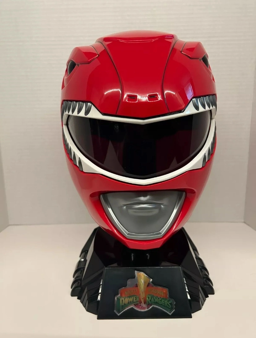 Power Rangers Red Ranger Helmet "It's morphin' time! This awesome helmet is full-scale, wearable and features show-inspired design and detail. Wear it proudly or display the Red Ranger's famous helmet on your shelf at home. This full-head helmet lets you bring home a trophy from the 1990s and will be a great addition to any fan’s collection. It includes a display stand for morphinominal display in your Power Rangers collection. It’s a full-scale helmet suitable for fans aged 18 years and up. Whether you’re displaying it, wearing it, or adding it to your collection, these helmets let you embrace your inner Red Ranger! Don’t miss this one, Rangers fans! Pick-up only.