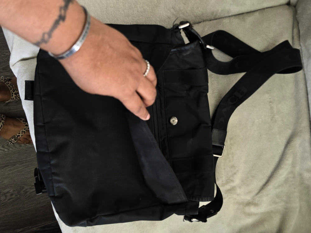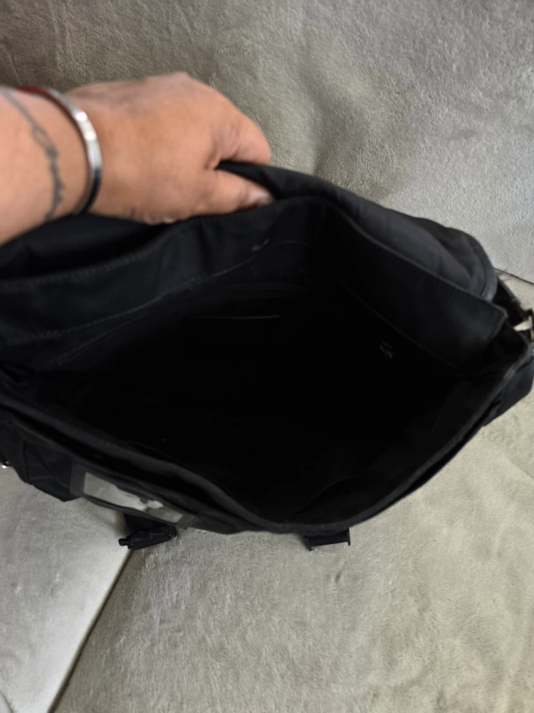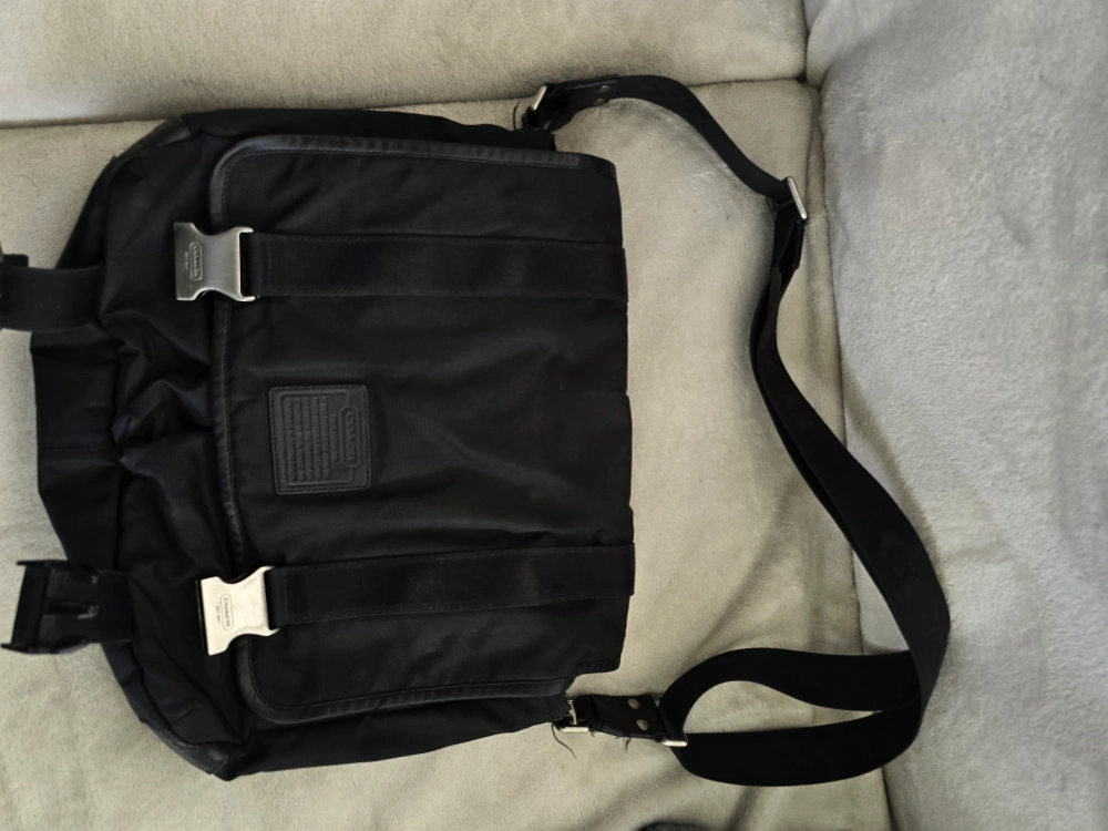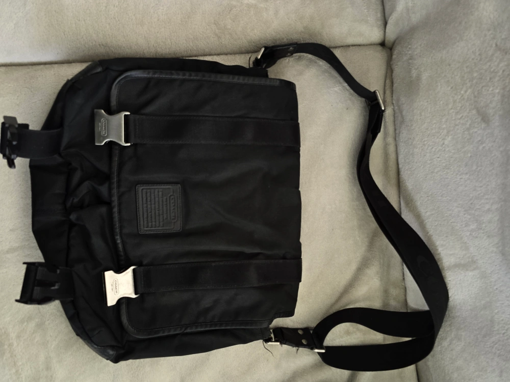 Black, in better than good condition, no stains, just basic use. husband used it as a computer bag for work. Lots of room lots of pockets.
