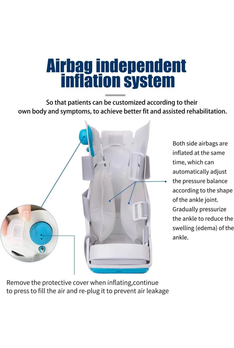 The built-in inflatable bag can increase stability and compressibility to keep injured ankle in correct position further, promote the healing of the injured bone