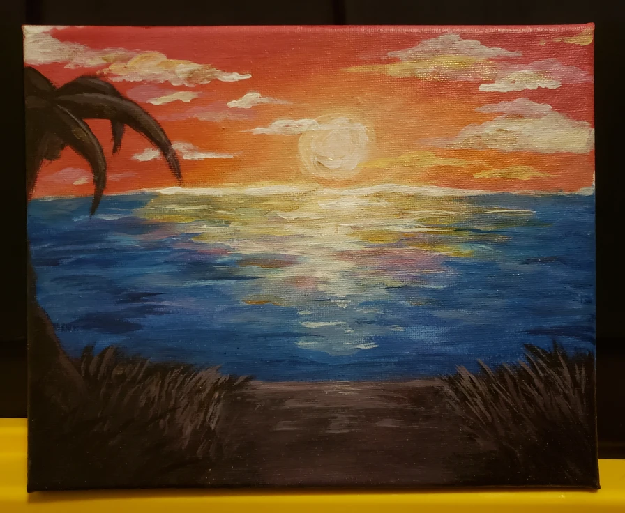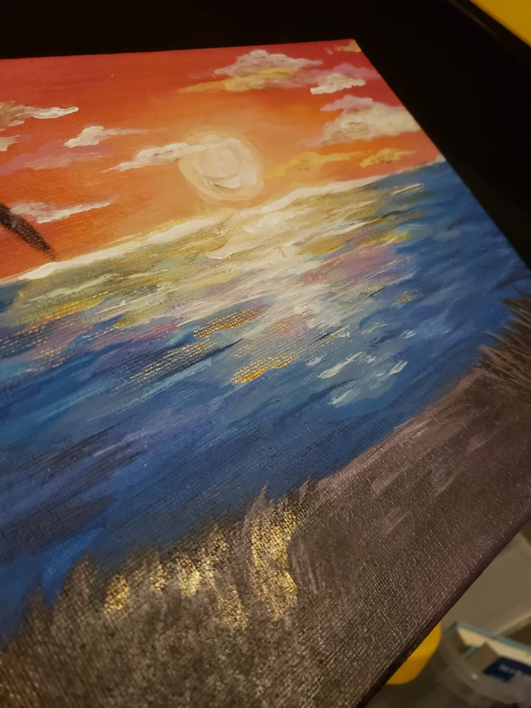 Just a simple sunset painting I made and figured I'd try to sell, I used special metallic golden highlights for some parts as shown on second image