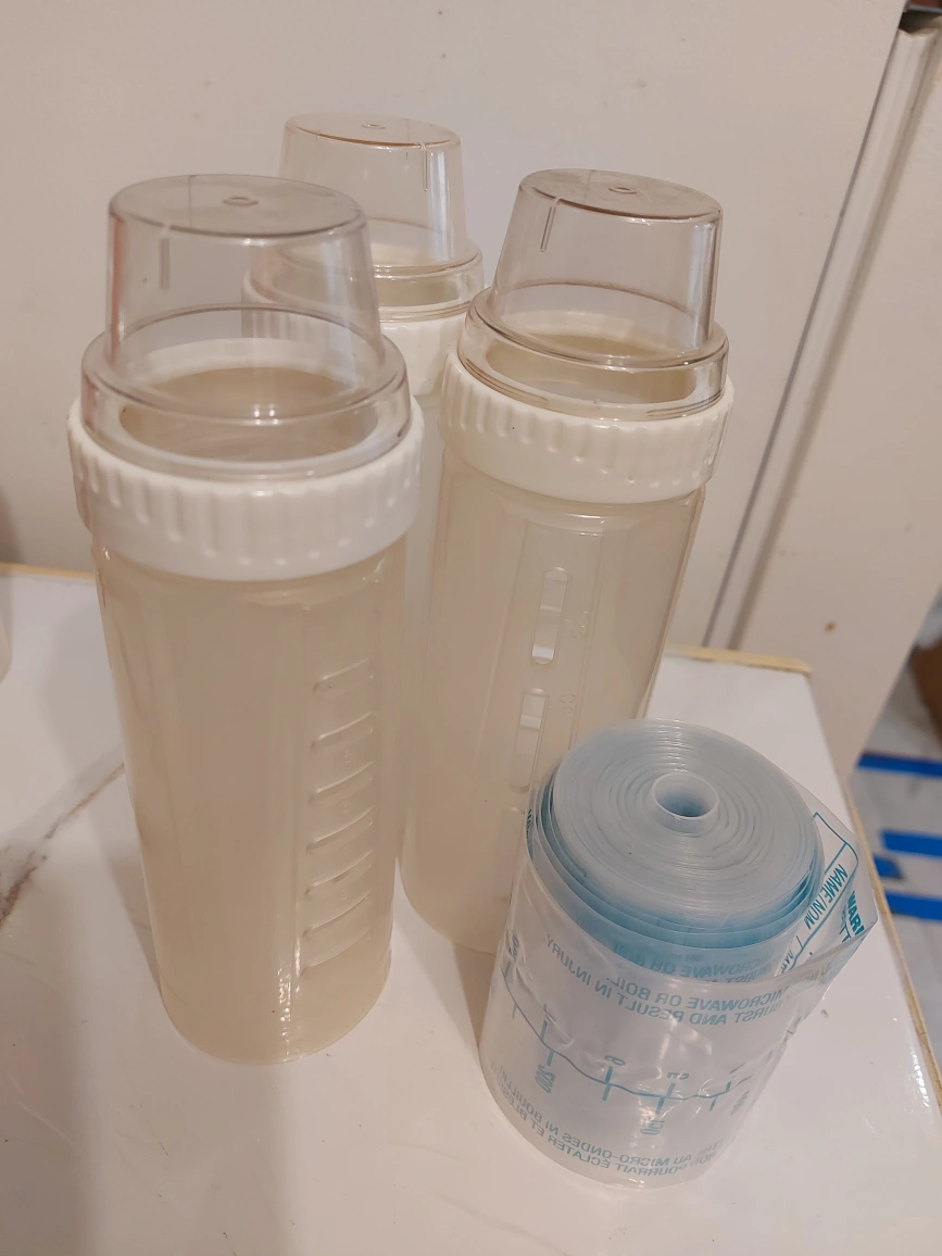 Vintage never been used set of 3 baby bottles with liner bags. Comes with 3 lids.