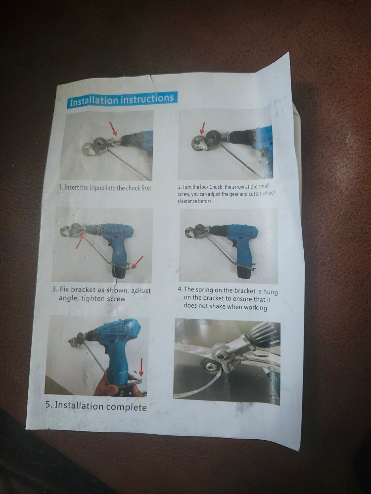 this product is suitable for cutting flat metal sheet less than 1mm. it attaches to a electric drill. never used. instructions included.