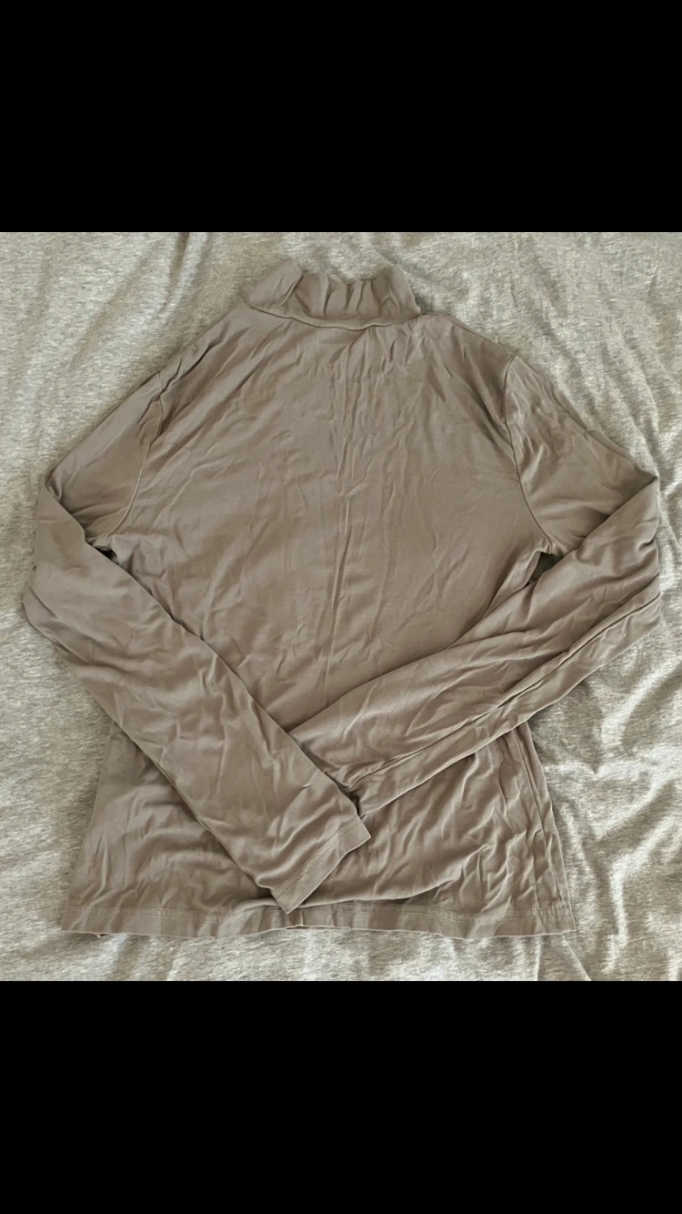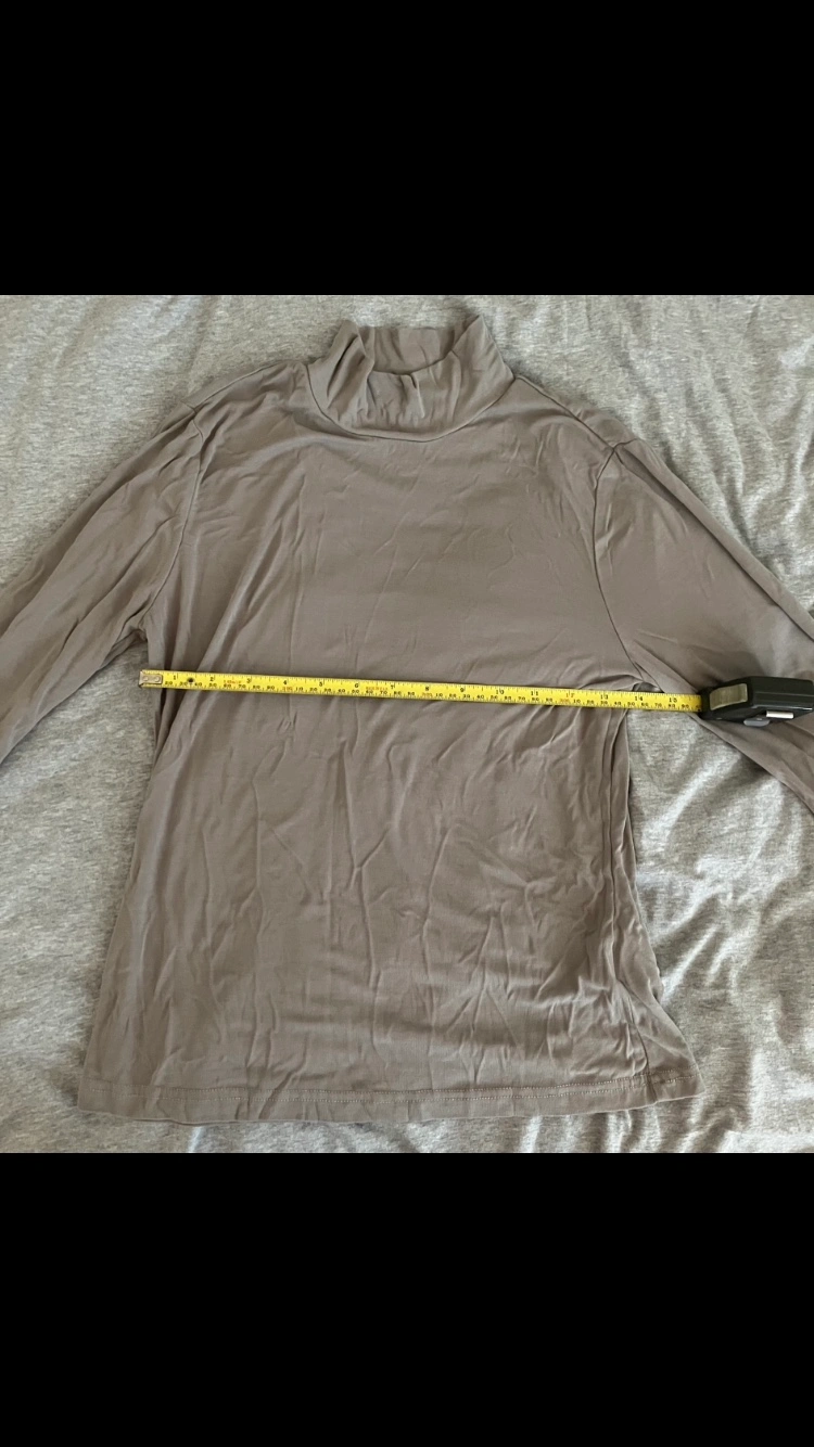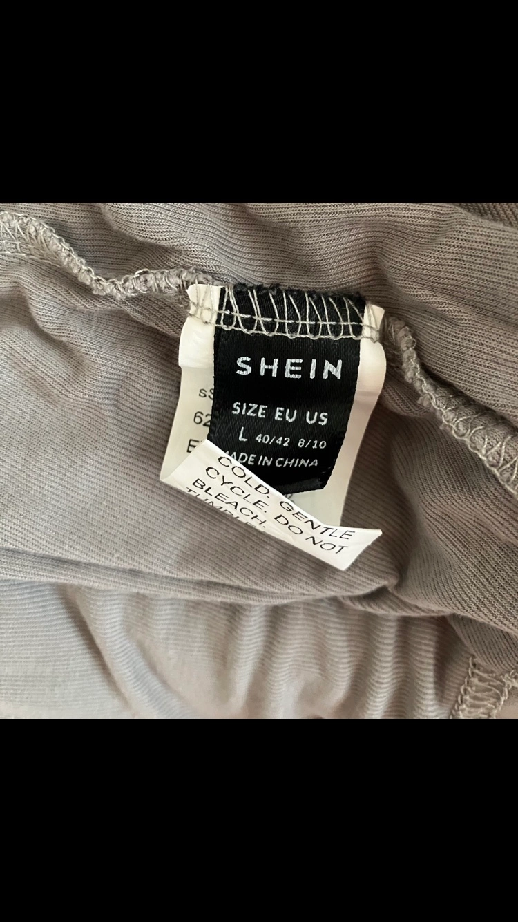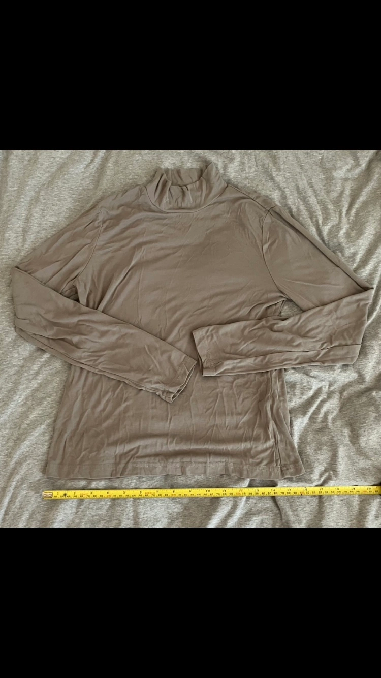 Shein high neck/mock neck solid fitted long sleeved top. I washed it when I first bought it, but it’s never been worn. It has really soft, stretchy, silky and lightweight viscose fabric, and this is a nice light grey/taupe/khaki shade, which as a neutral shade, is a staple piece and will look great in many different outfits.
