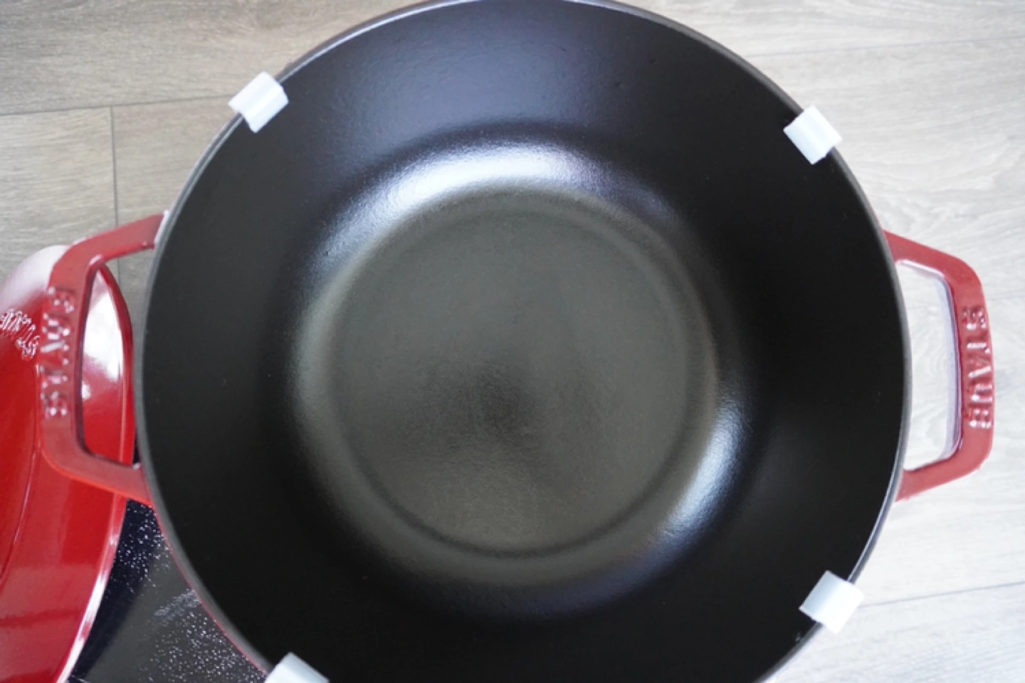 - Matte black enamel interior heats and enhances caramelization, excellent searing