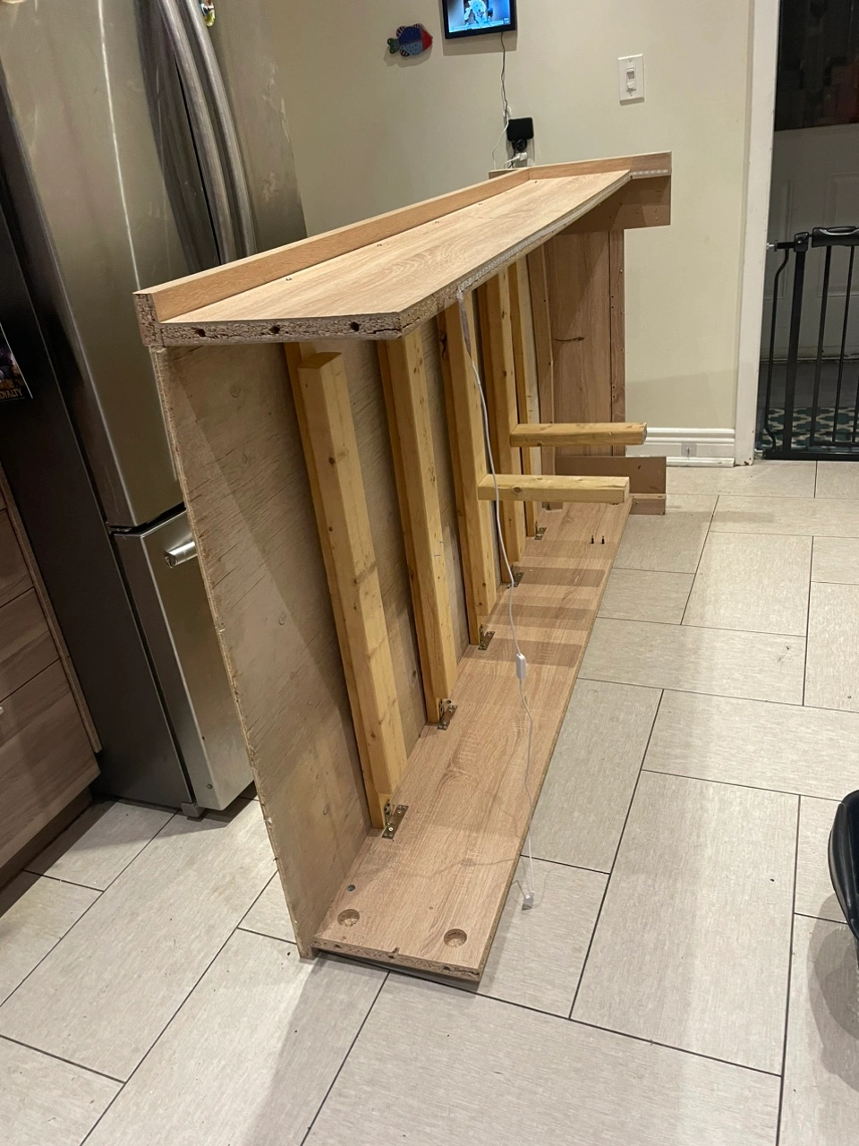 Nice single bed for sale, the first picture is how the bed looks ones you have it all set and the rest of the pictures are how it looks with out the mattress and how you will find it when you come. My husband put extra support ( the person was using it needed it )and we can only dissemble the head bored.