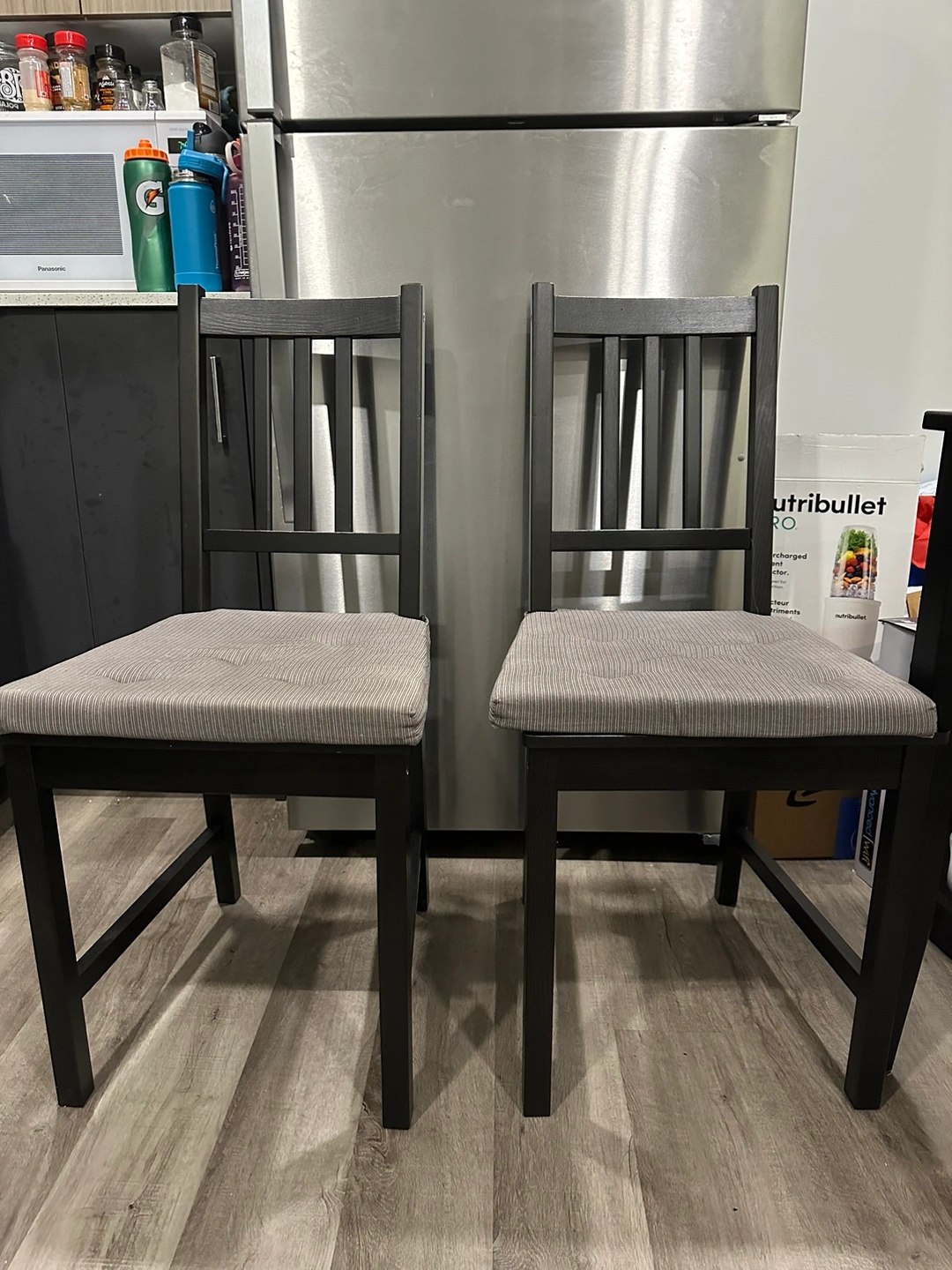 The chairs are like brand new barely used being sold for $40 each at ikea, cushions were sold separately but they are included!