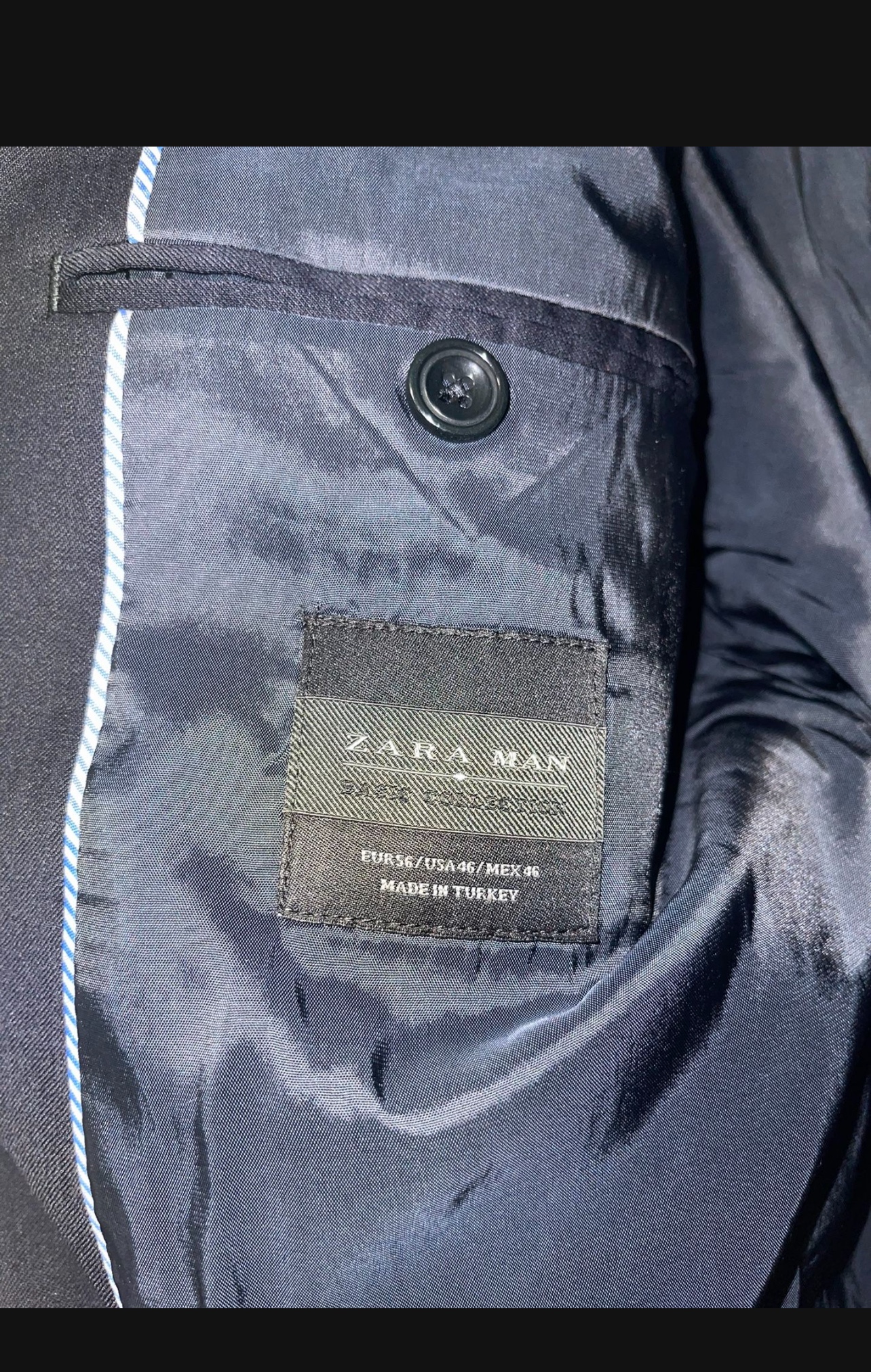 Navy Blue Suit Jacket and Pants in excellent condition. No rips or tears.44 pants. 46 jacket