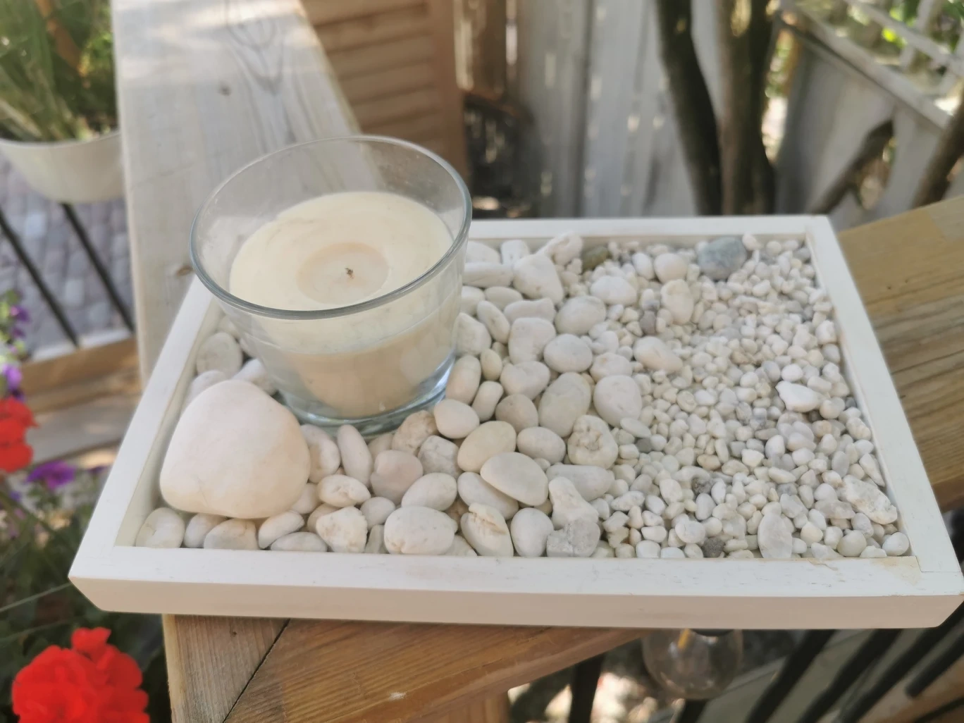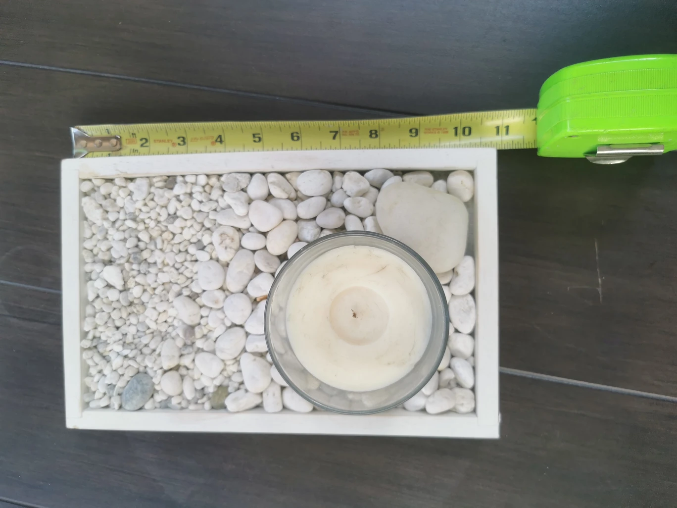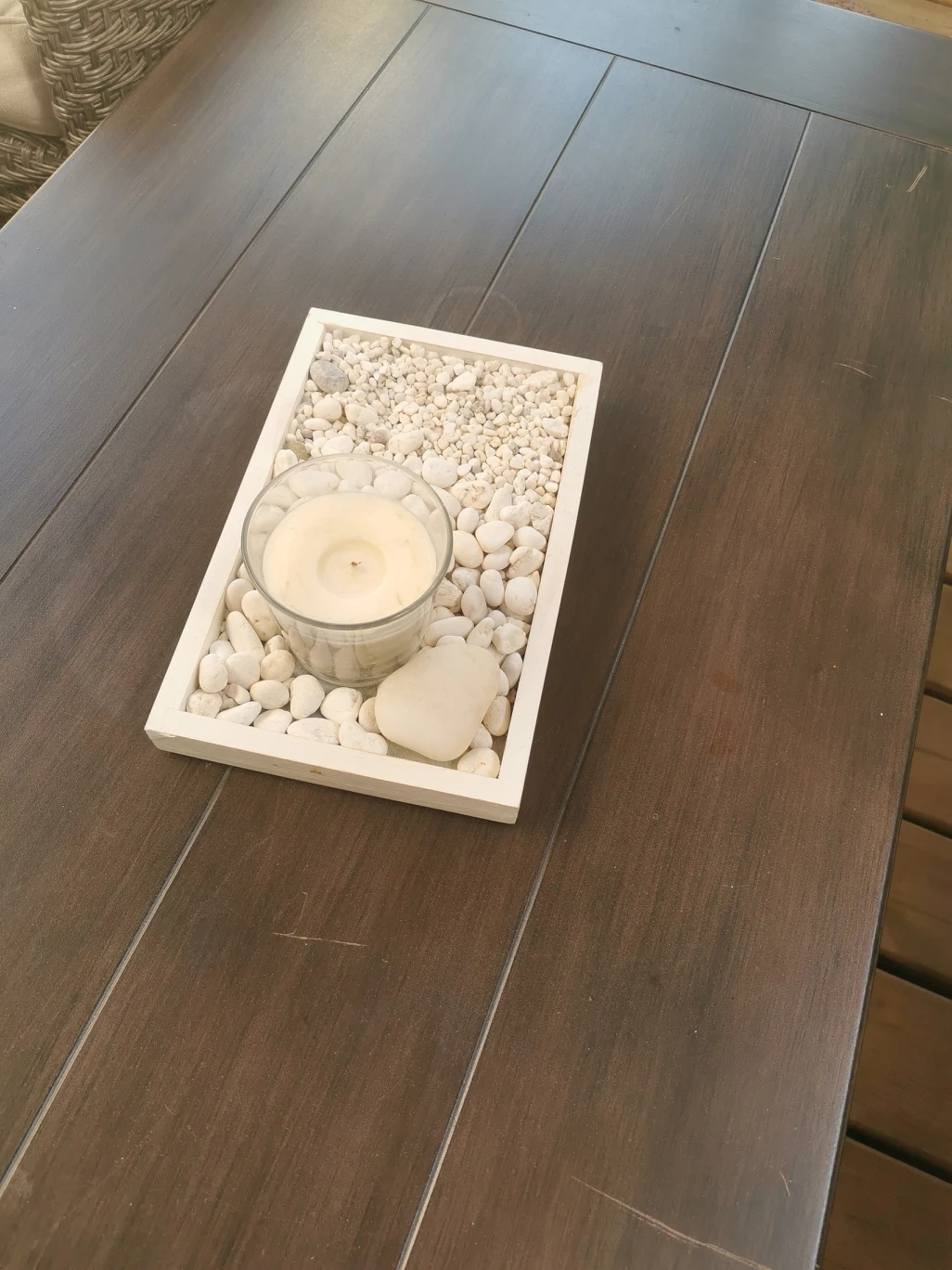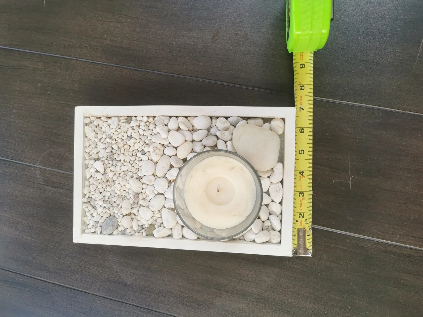 Home decor table top rock garden with candle.