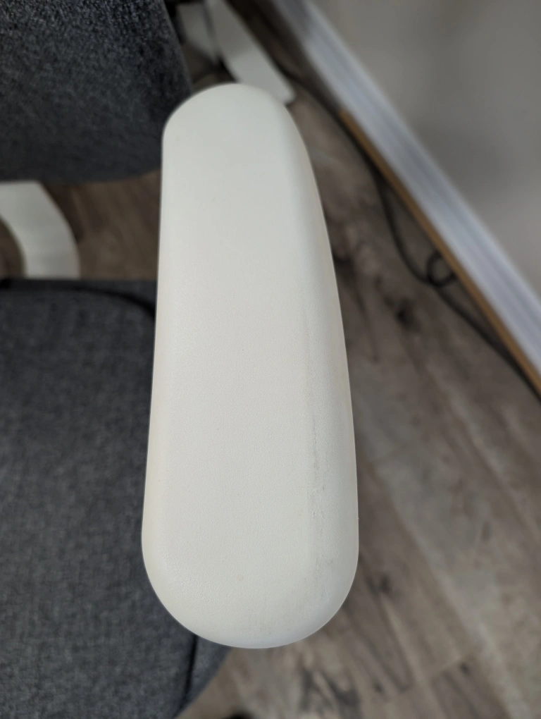 I've had it for 2 years. Condition is great with some minor wear on the armrests (see the photo attached). All the adjustments work. The chair was used in a smoke and pet-free household.