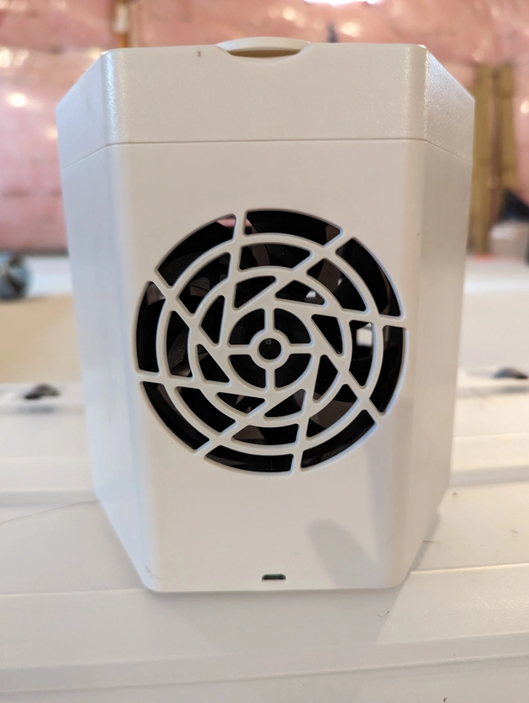 This cooler is in great condition and ready to use. It features a water tank to cool air for personal use. It is perfect for use in a bedroom, office, or other small space.