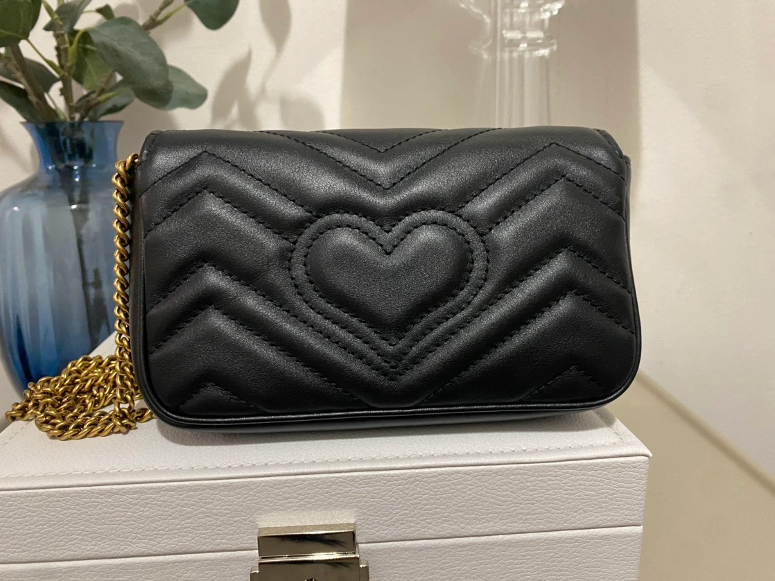 Authentic Gucci GG Marmont Super Mini Chain Bag.