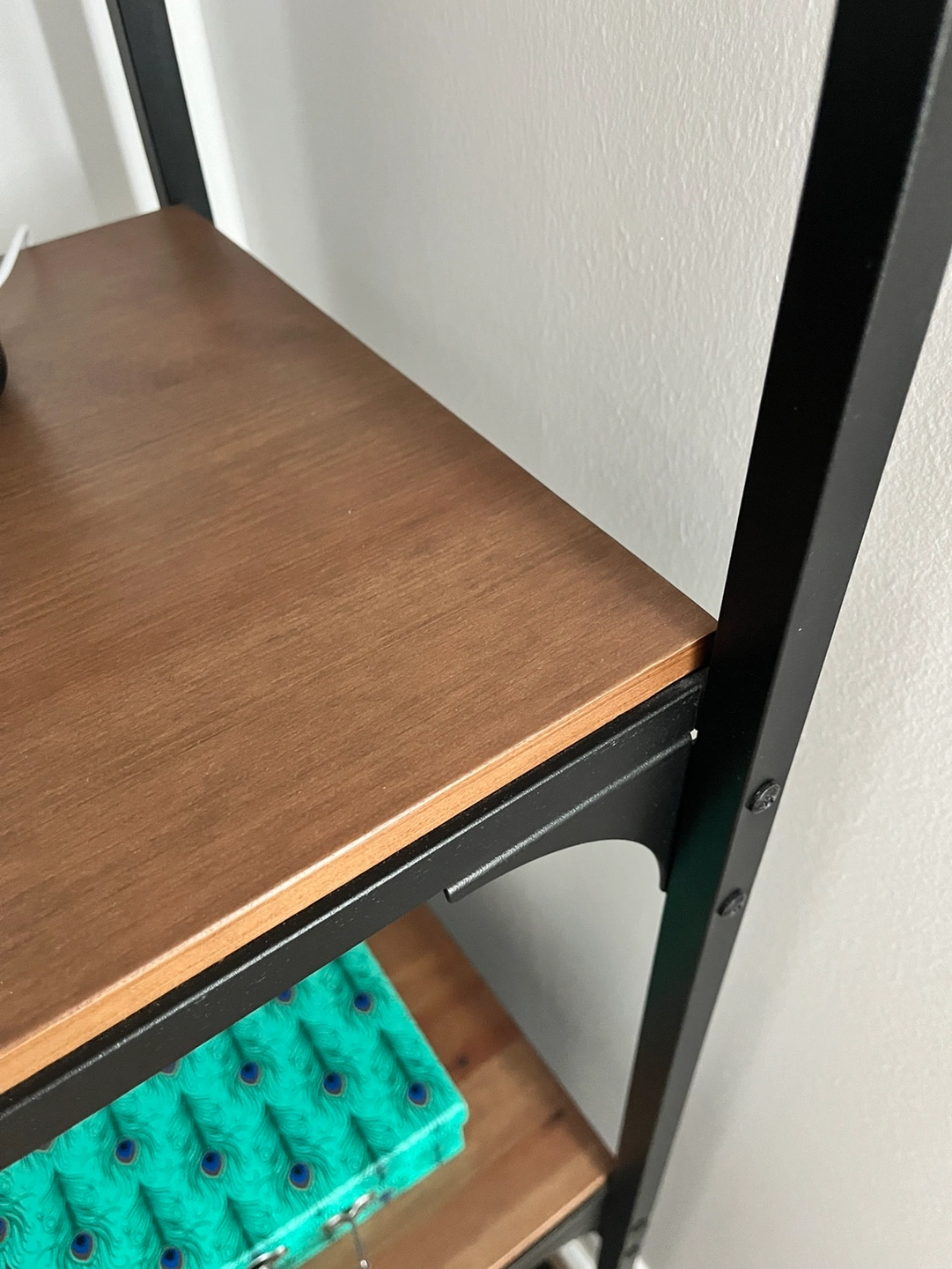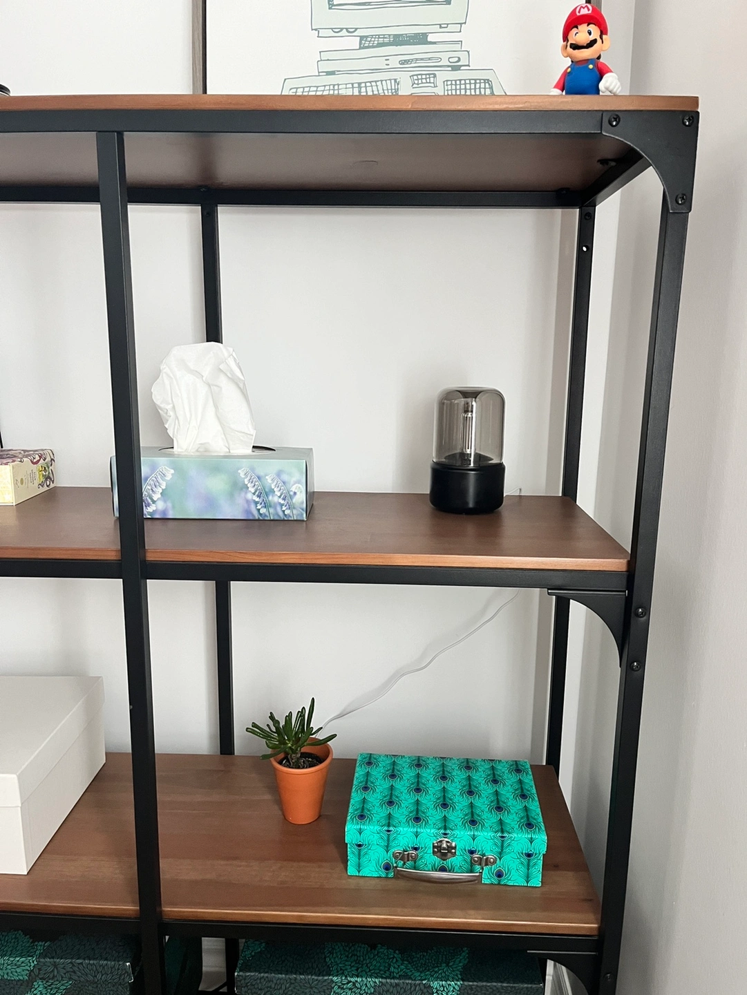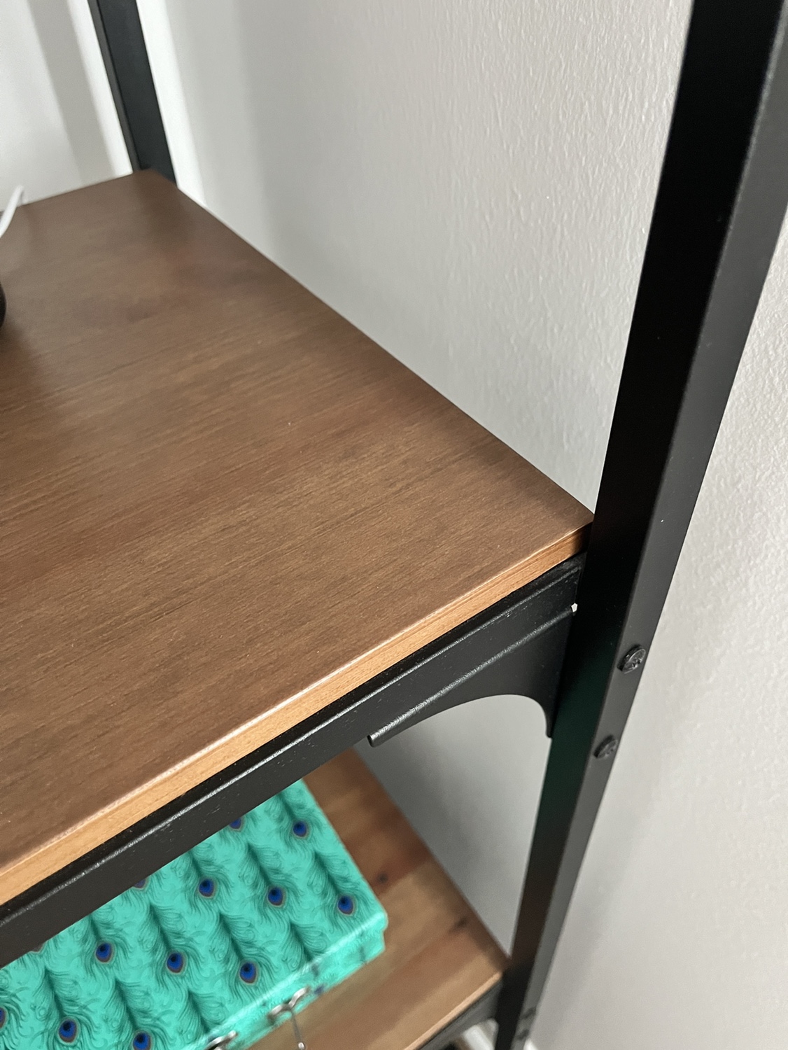 Like new black metal and wood Ikea shelf unit. Adjustable feet.