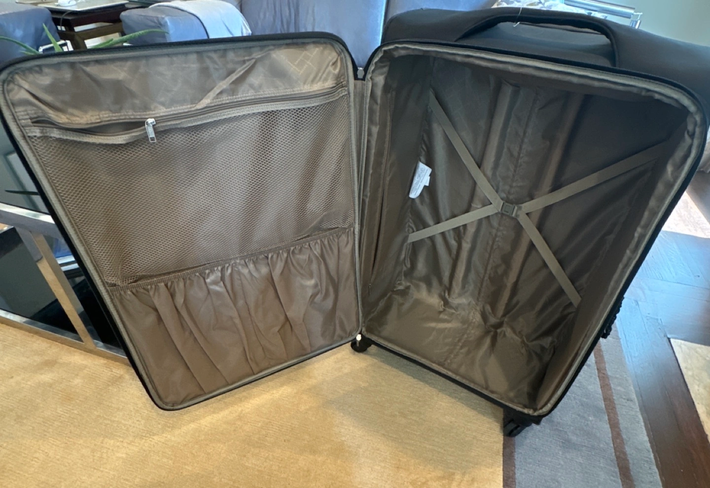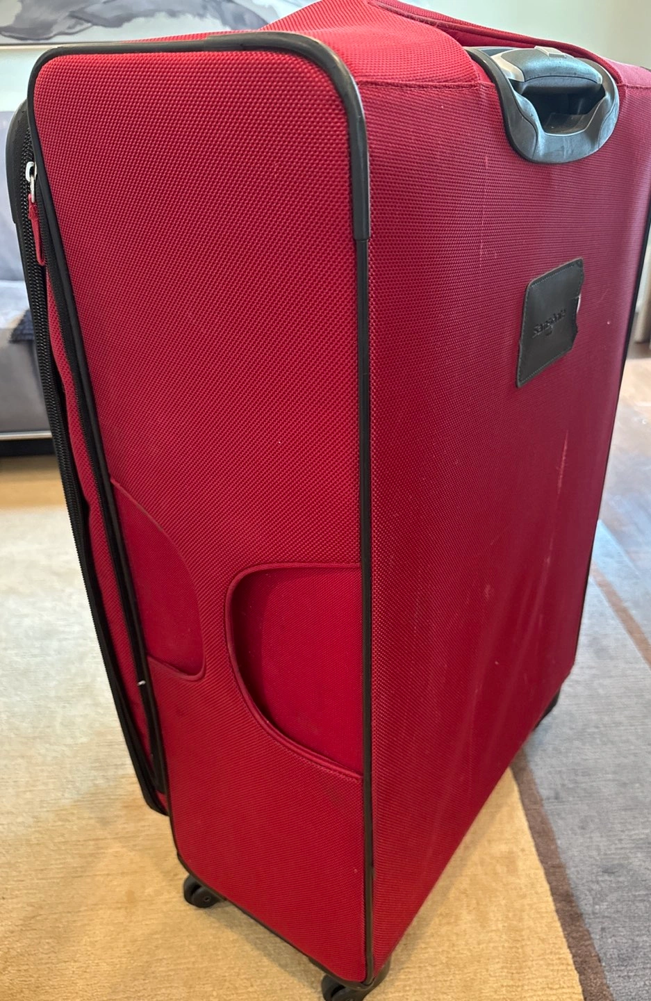 Extra large gently used suitcases. 32” x 20” x12”. Rotating wheels intact. Zippers intact. Some minor marks on front.