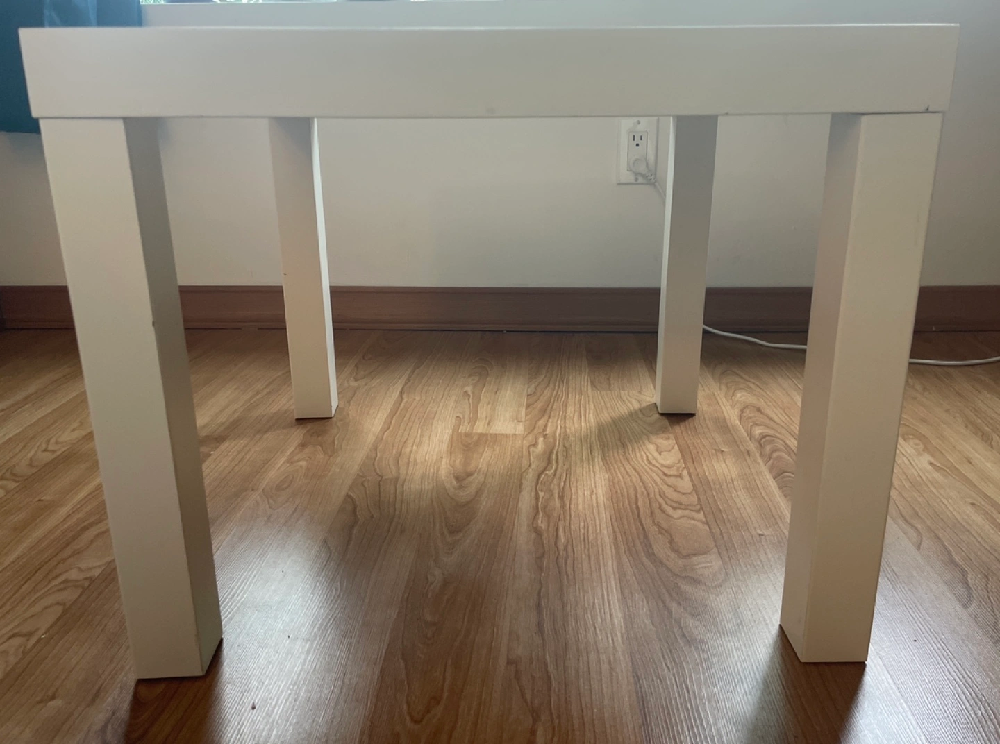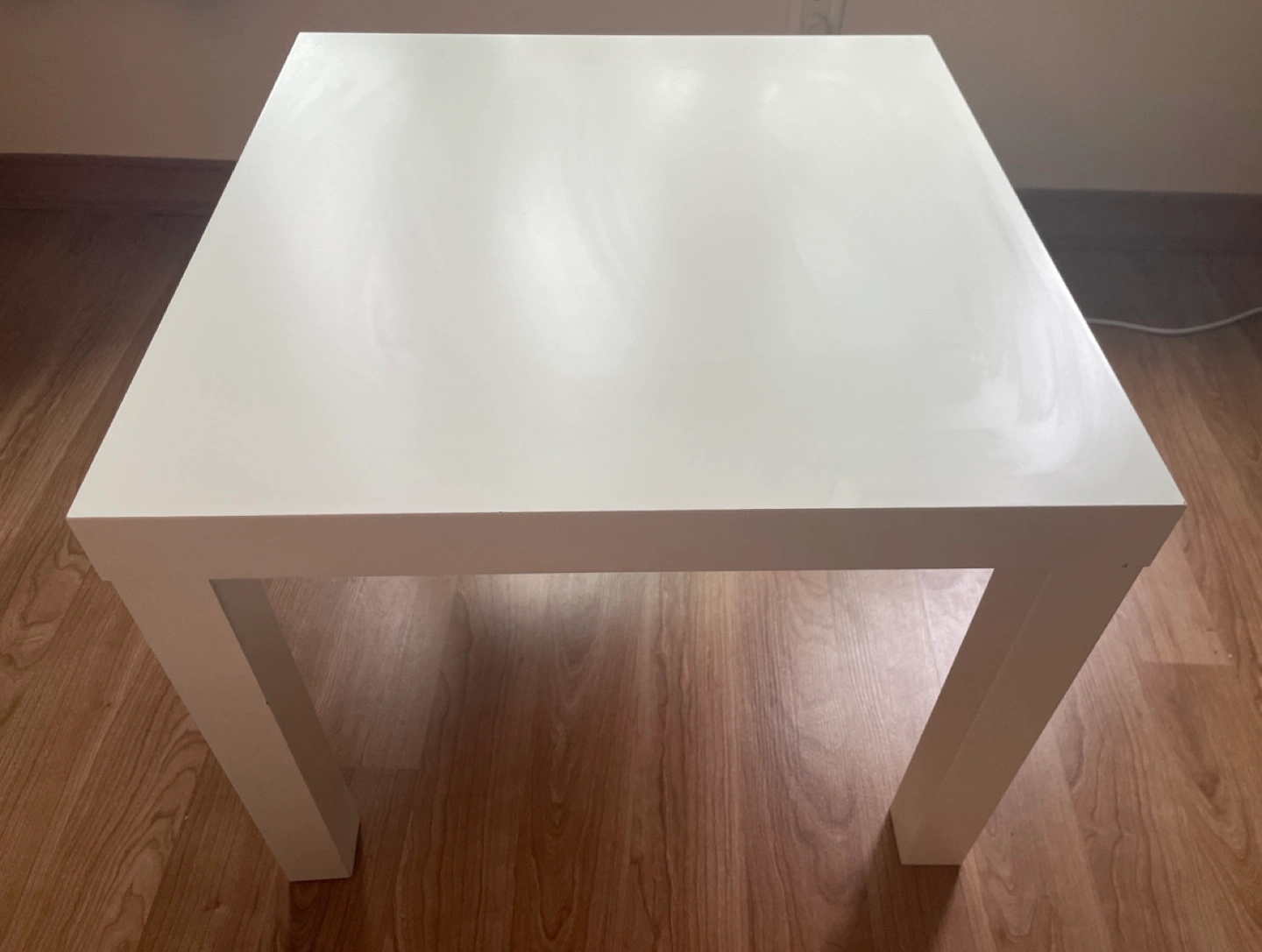 IKEA coffee table bought 1.5 years ago. Very small scratch in the corner. From a pet free and smoke free home.