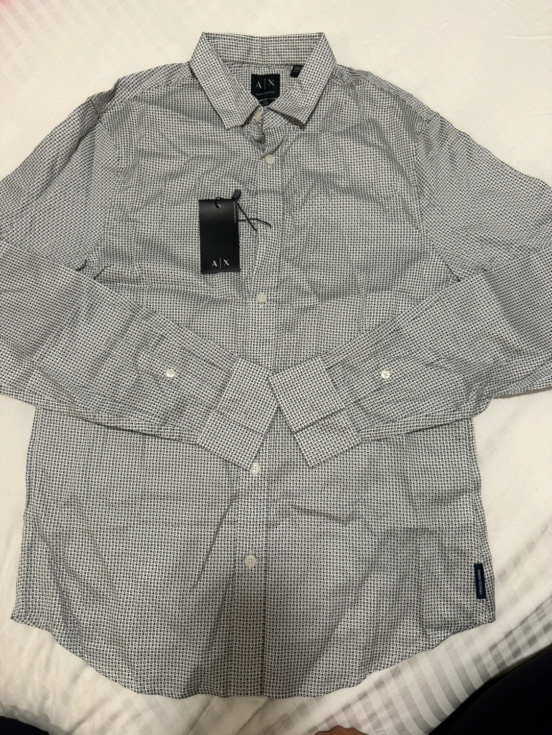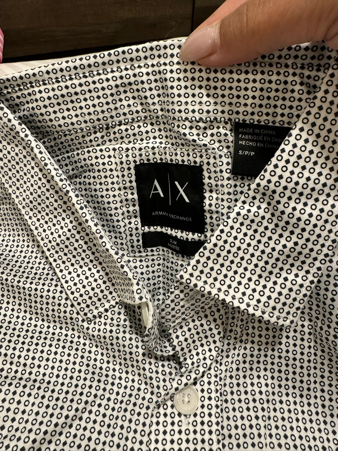 Men’s Size Small Armani Exchange long sleeve dress shirt. Black and white design. Brand Mew. Pick up Richmond Oval or DT Waterfront area. $20