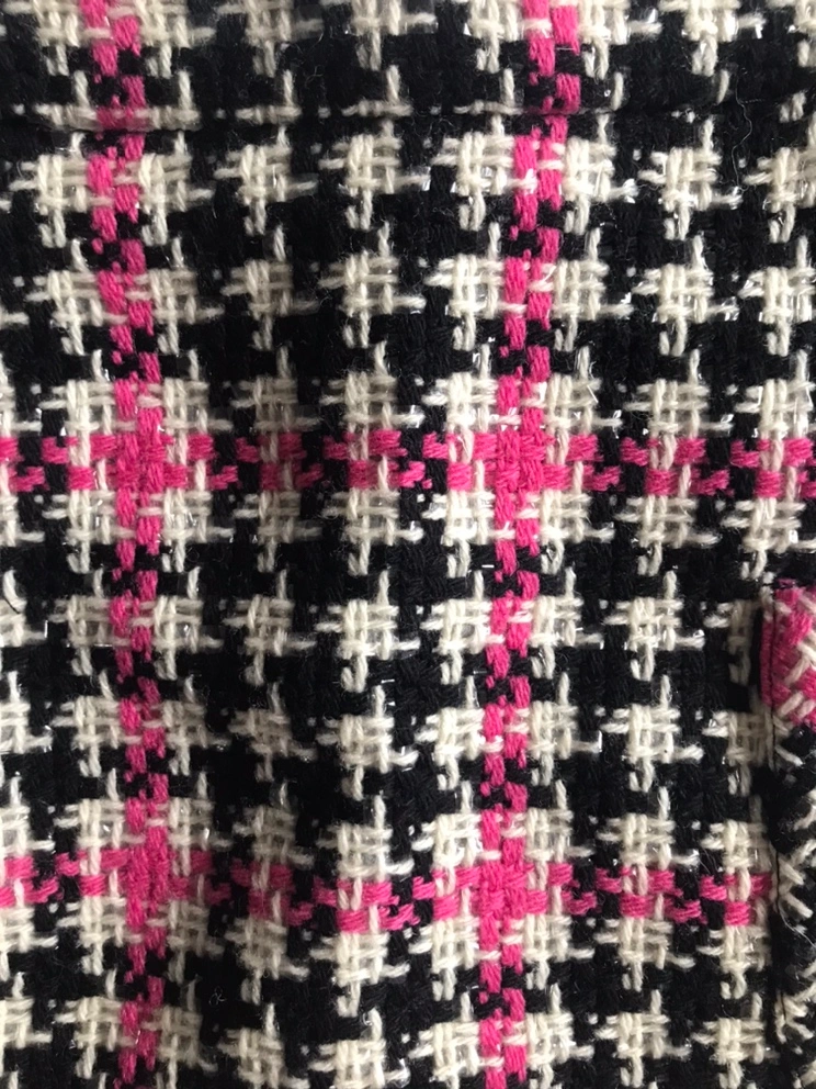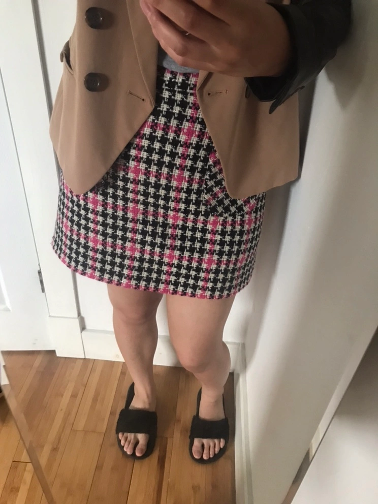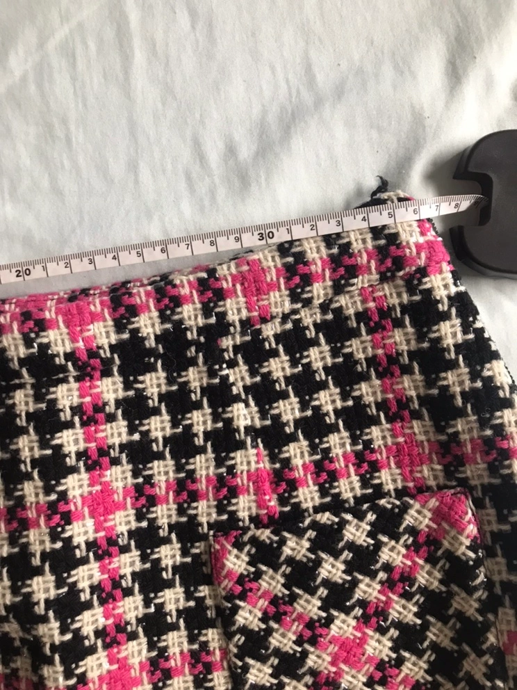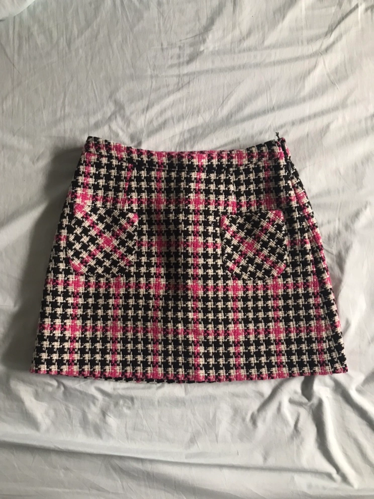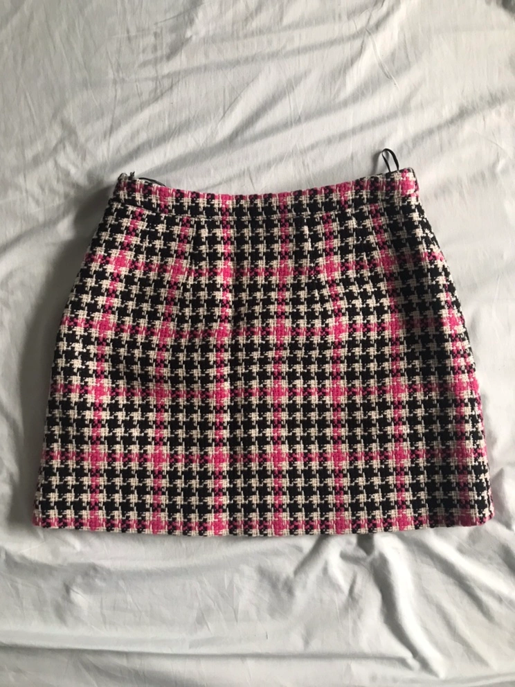 Black and pink plaid skirt with a high waist.