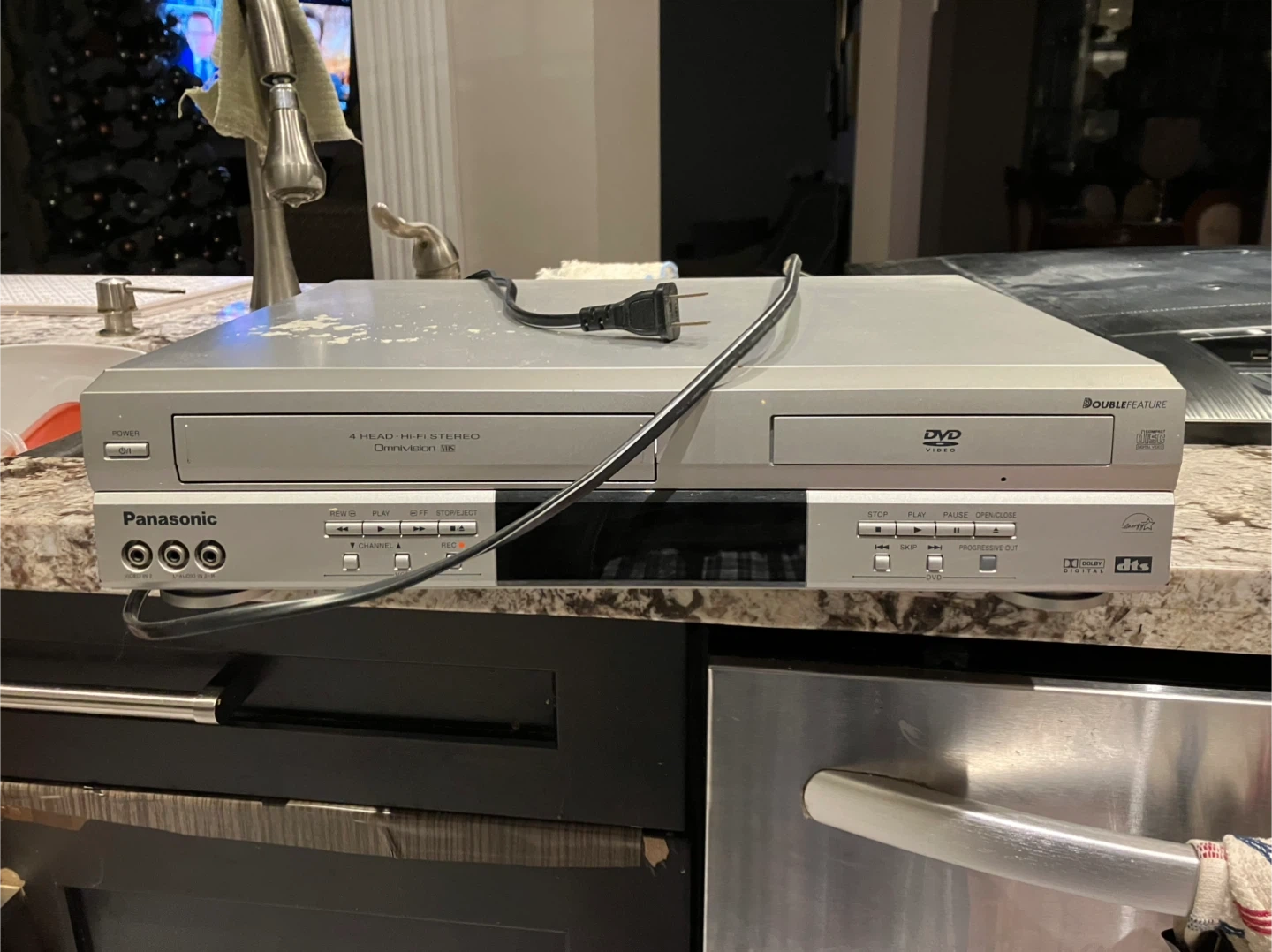 Dual VCR and DVD player for sale, in good working condition. It doesn’t come with a remote or any of the cables to connect it to a TV, but it does come with a power cable.