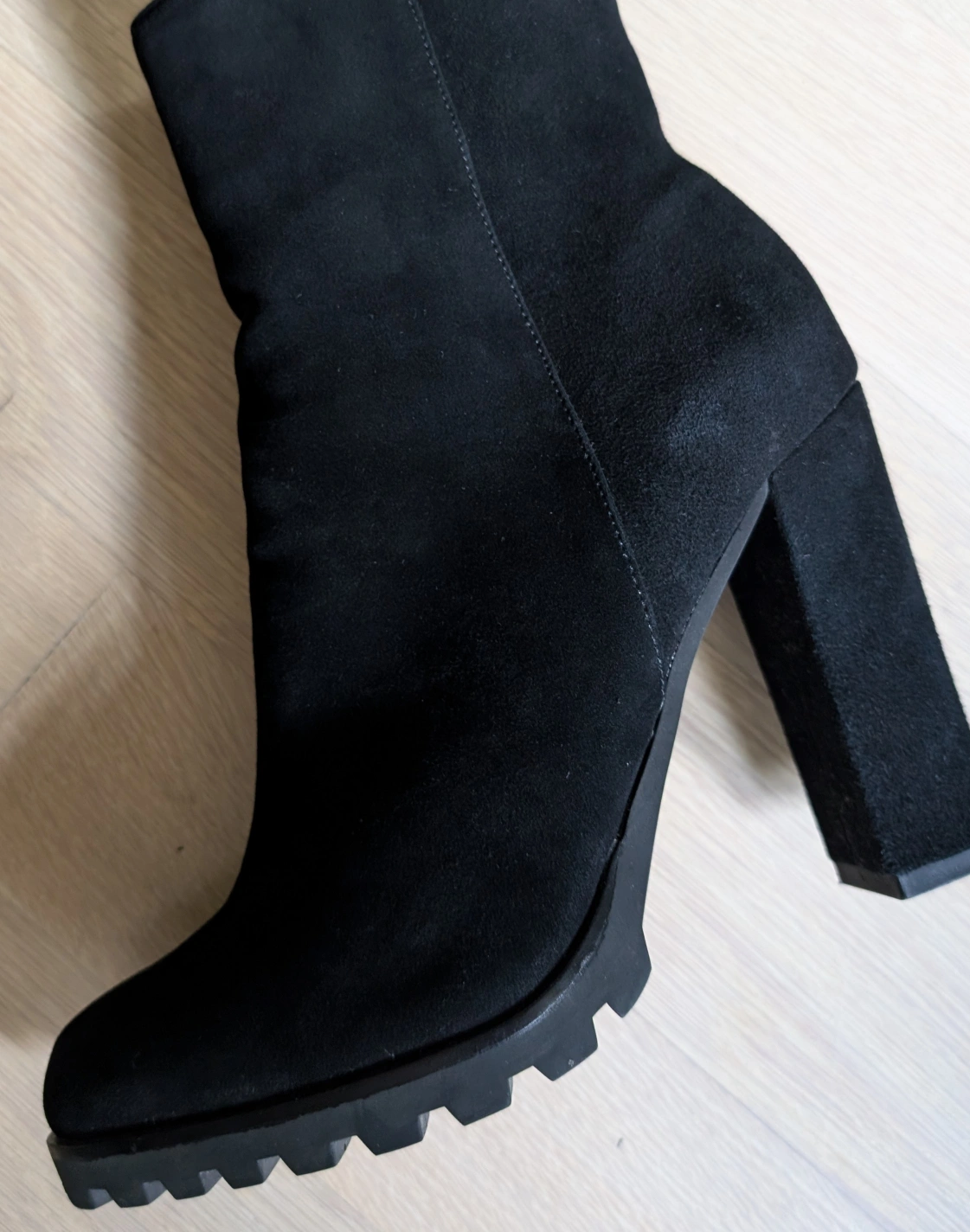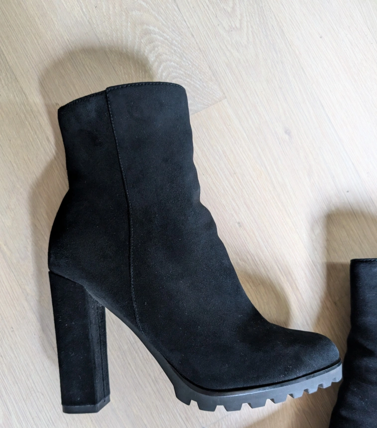 ALDO black suede ankle boots with a chunky heel and a zipper. In great condition. The boots need some TLC as I do not use chemicals on footwear. They are trendy and perfect for the ππ/Winter with a thick tread. πποΈ