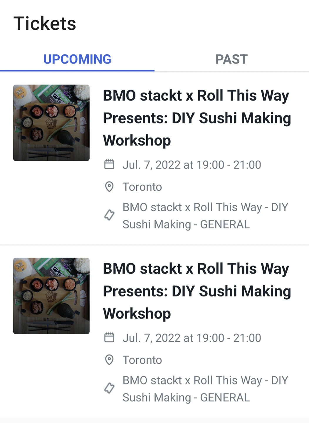 Got a pair of free tix to Stackt sushi making class on Thurs July 7... And realized I already had plans for that evening.
