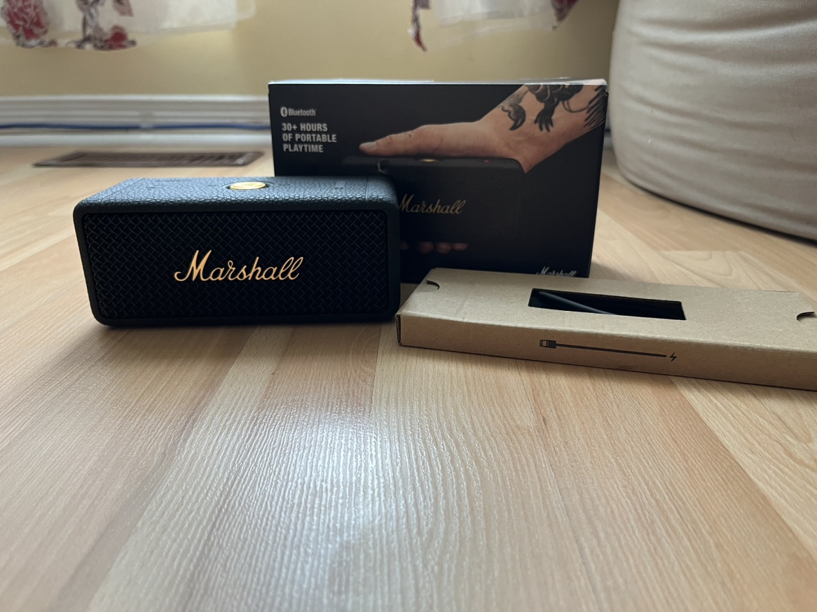 A black Marshall Emberton II black speaker. Comes with the branded charging cable and box. It is in very mint condition, like new. Pickup or I can meet in Mississauga. Negotiable.