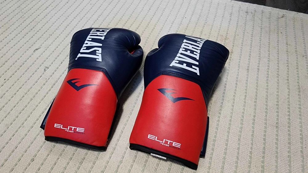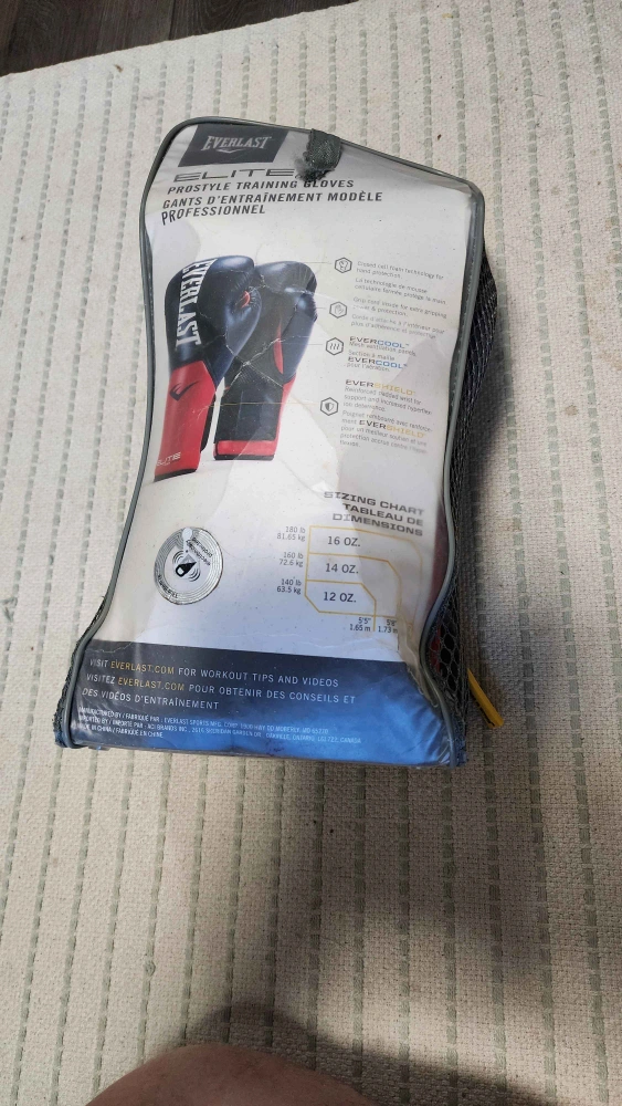 16 oz Everlast training gloves. Gloves are lightly used, packaging damaged from wear and tear.