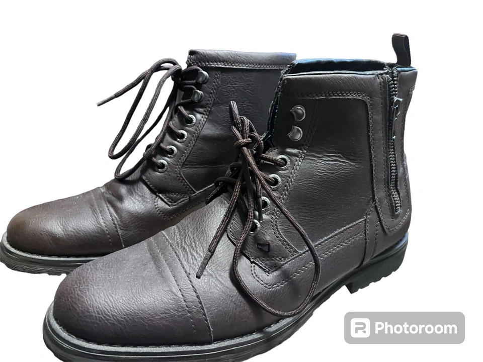 Dark Brown leather ankle boots with a lace up front and a zipper on the side. Excellent condition; rarely used. Size 11 (US). Fall/Spring fashion