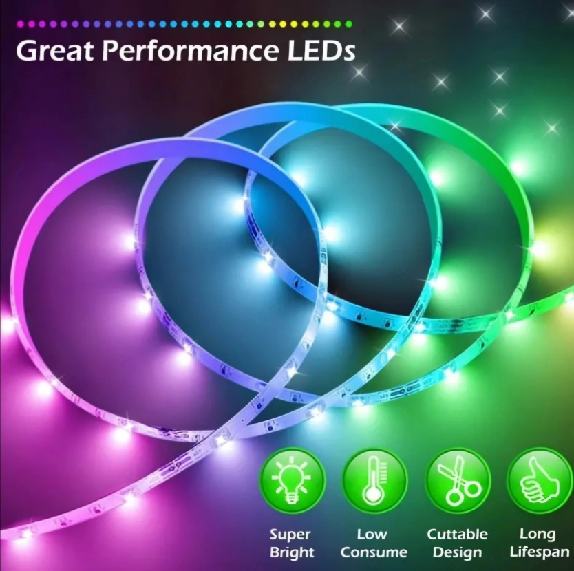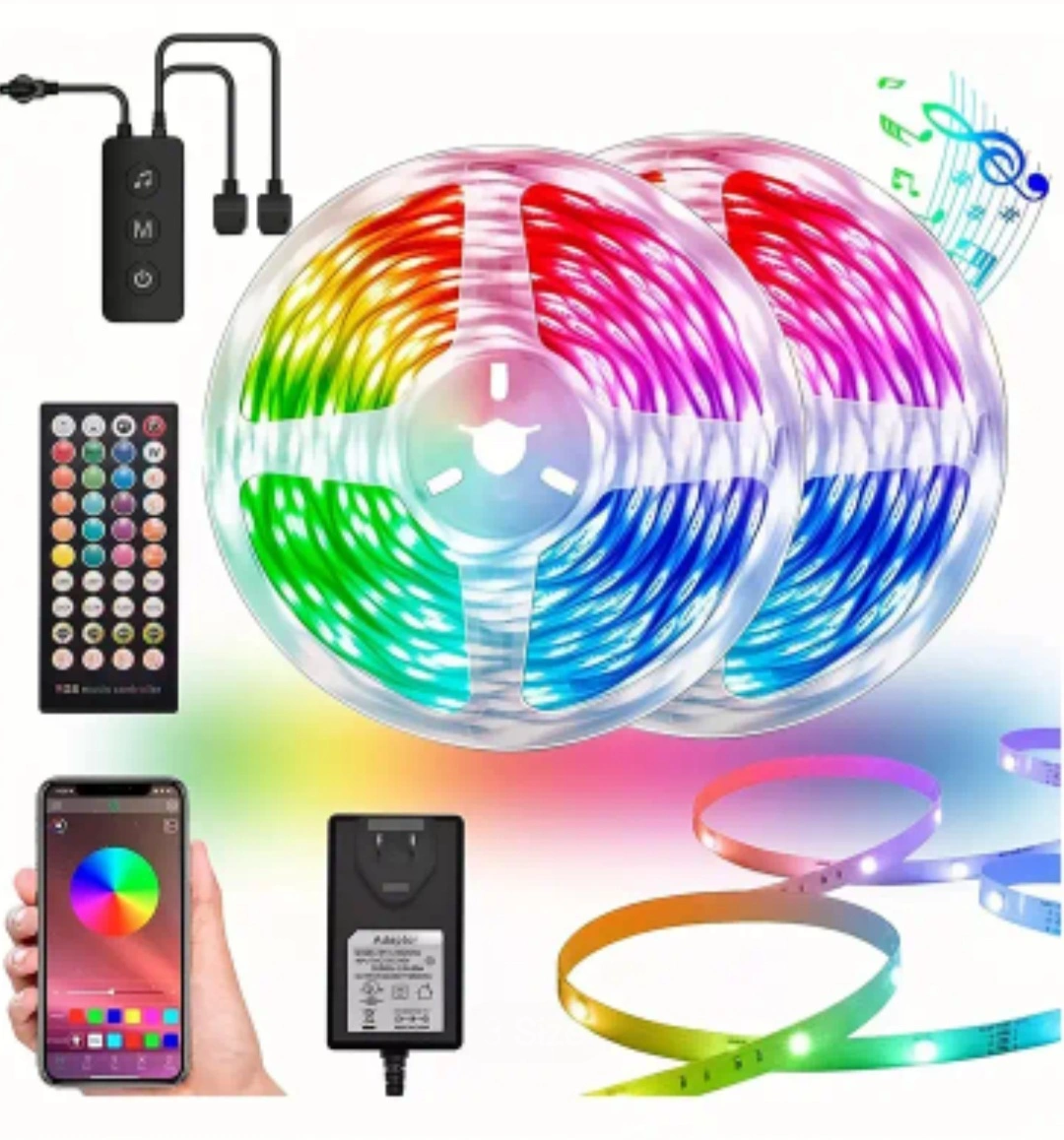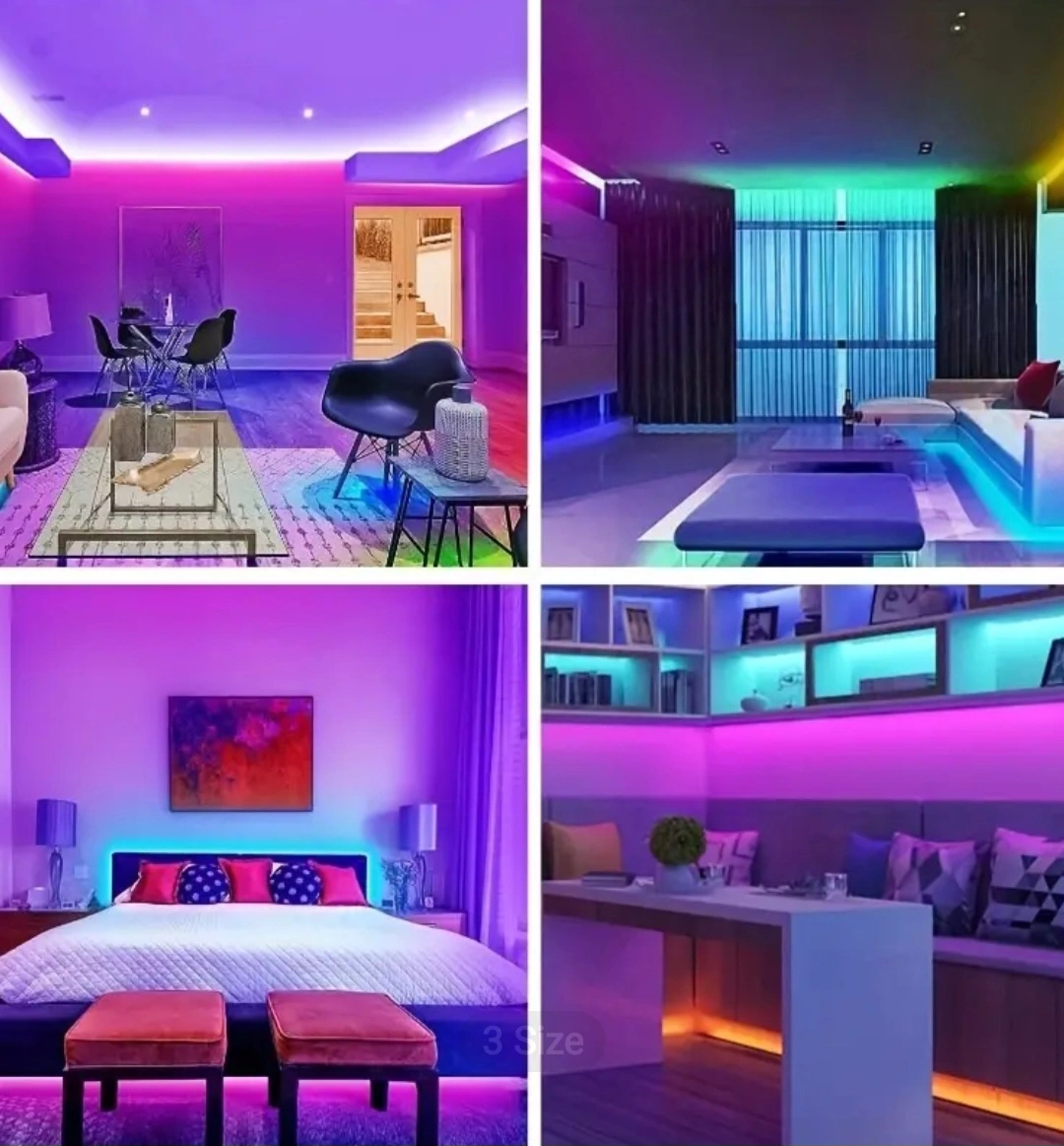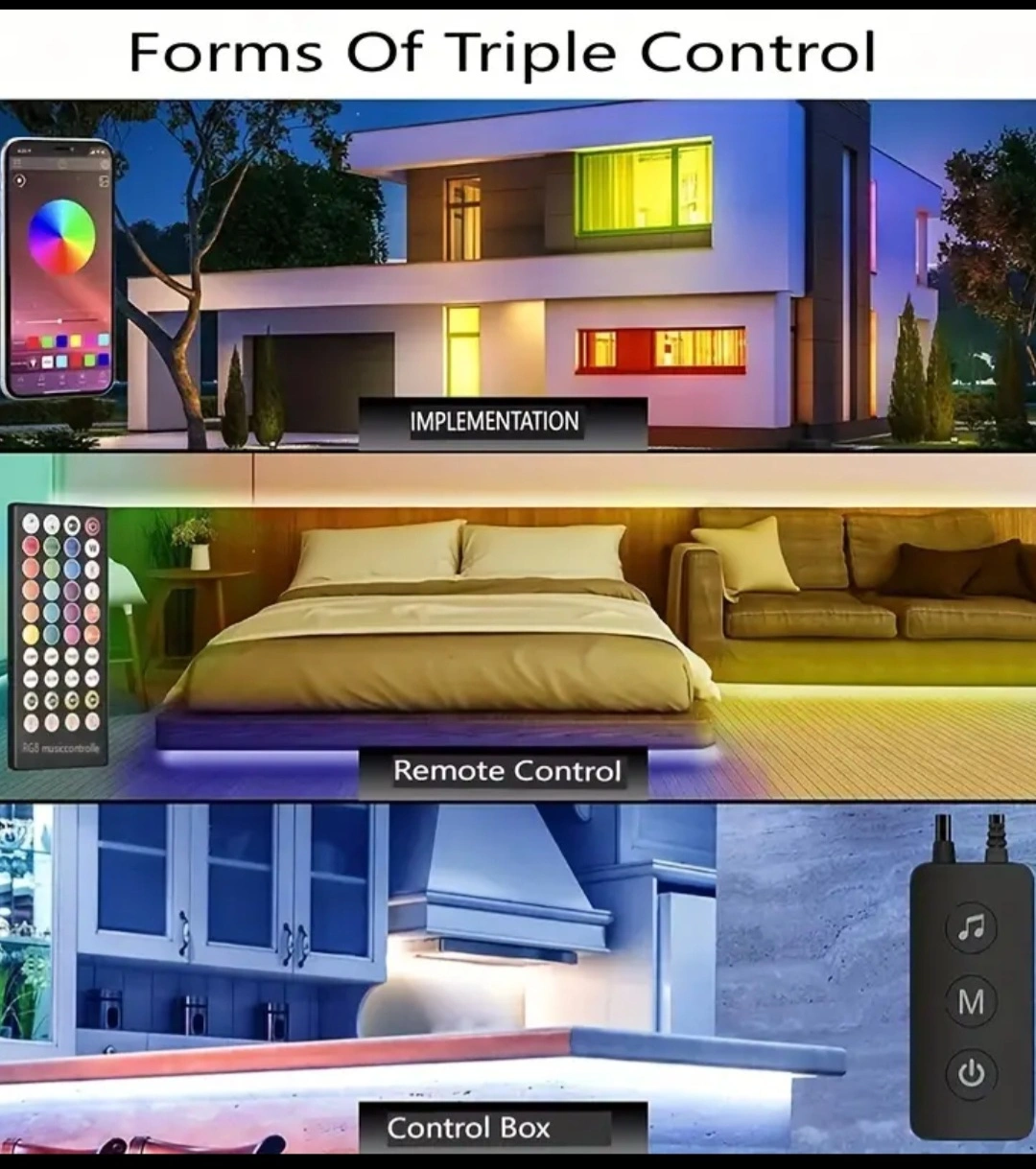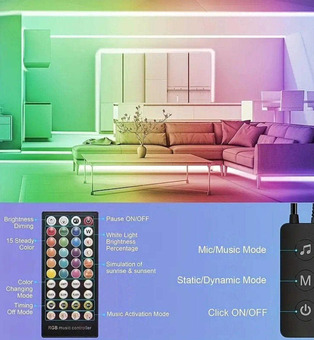 50/50 Single RGB Chip light Strip Comes with a remote control, control box, and phone app. for RGB multiple colors and brightness settings.Good for ceiling furniture beds and many other uses 64ft.