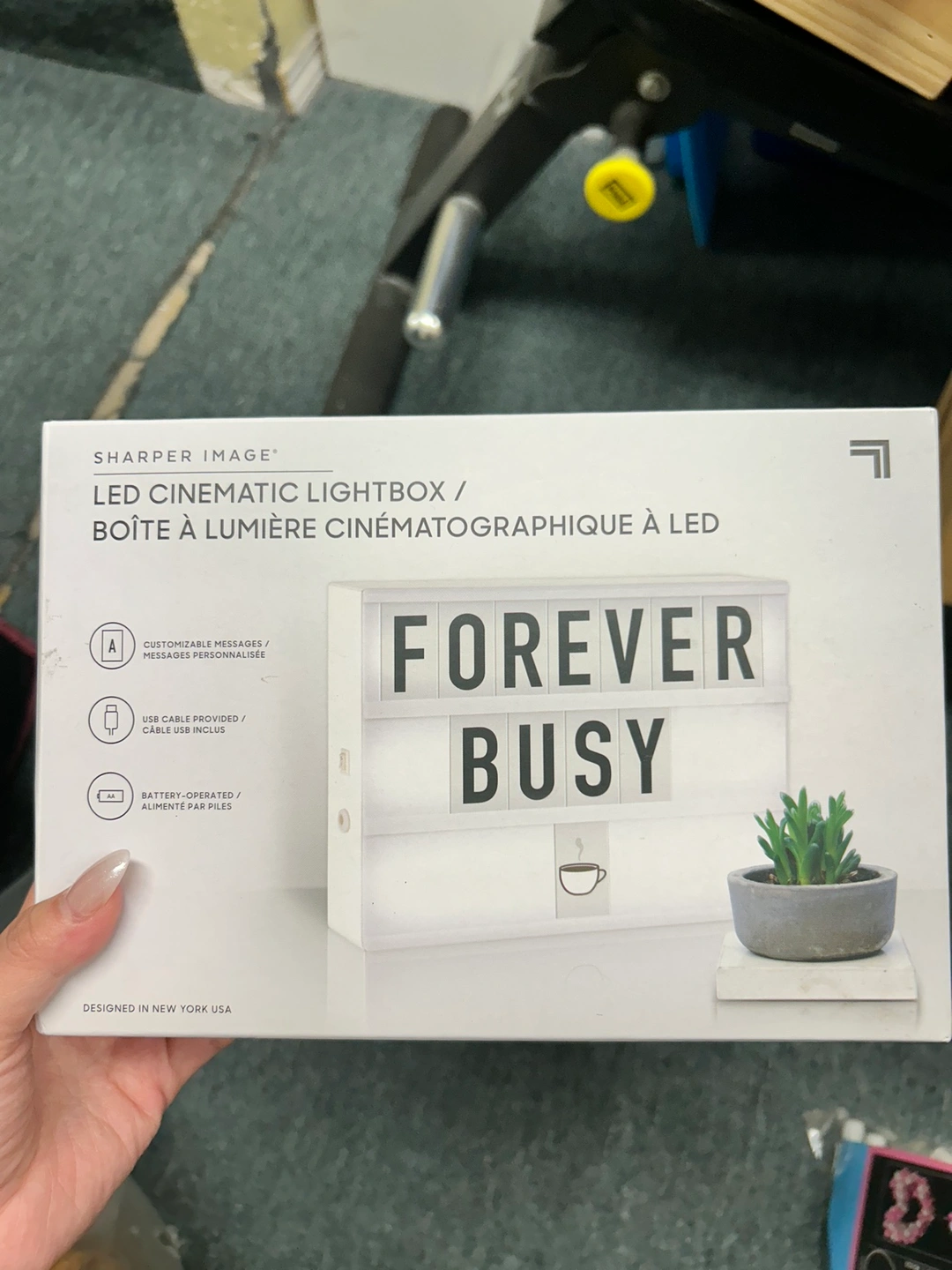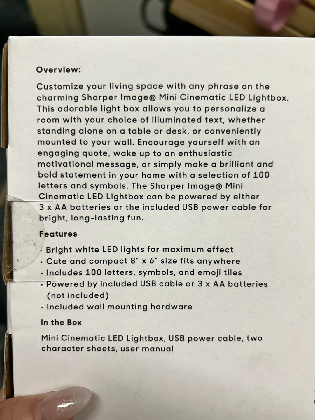 A customizable message box with 100 letters, symbols and emoji tiles, powered by batteries or a USB cable. Includes a wall mount.
