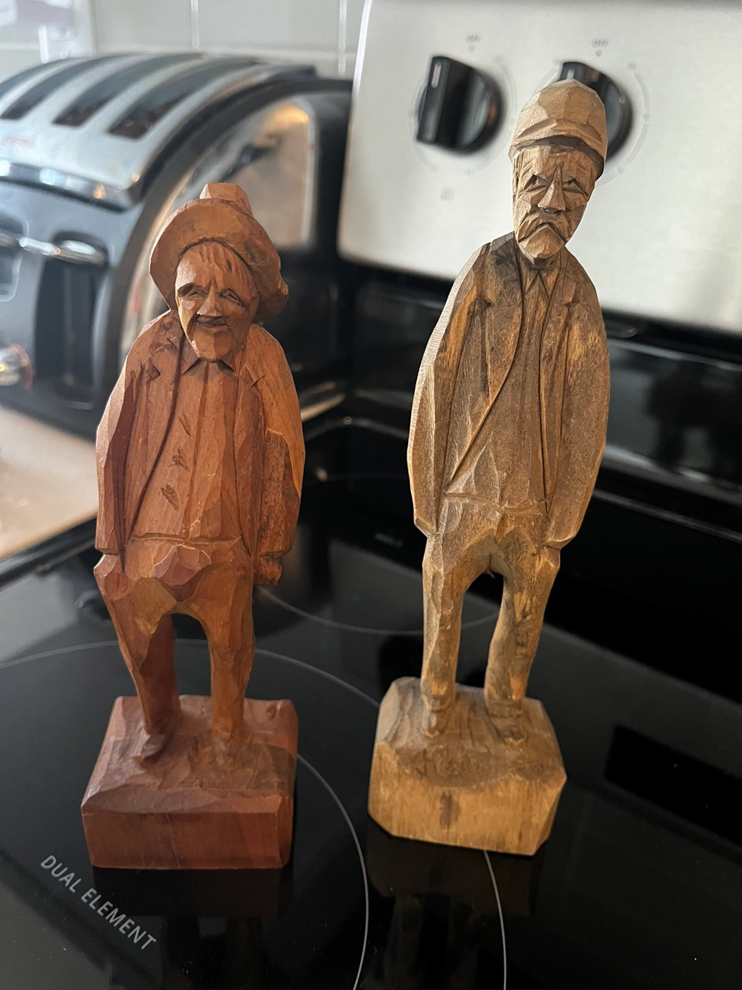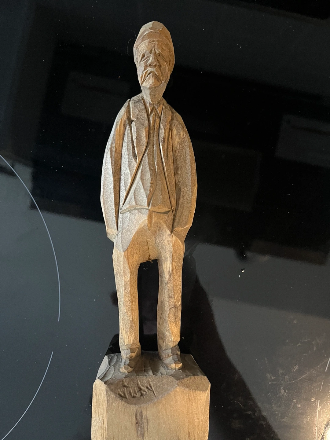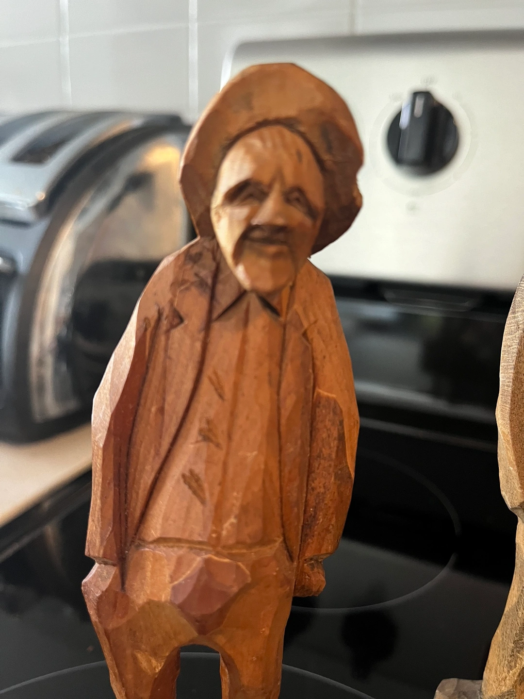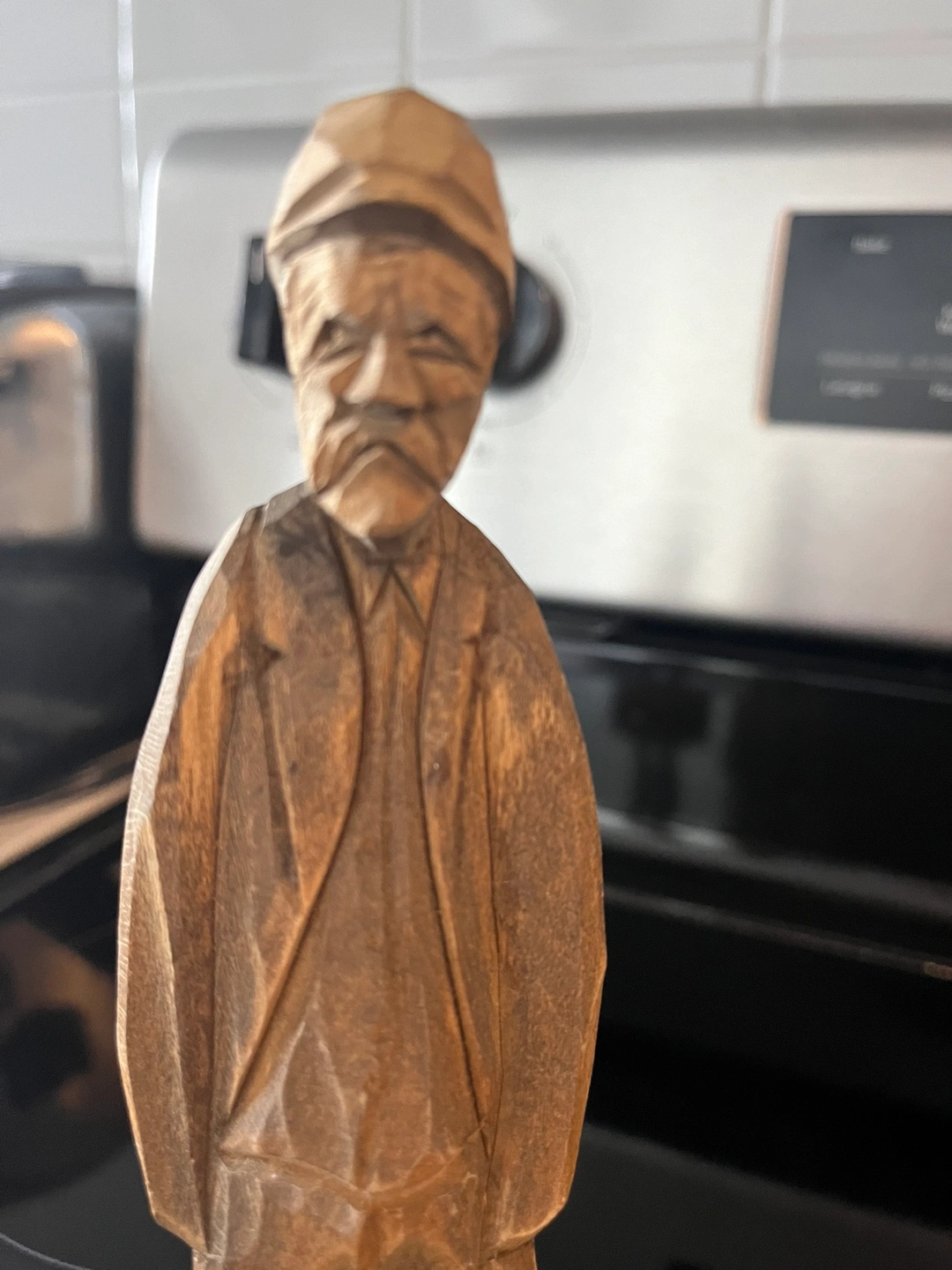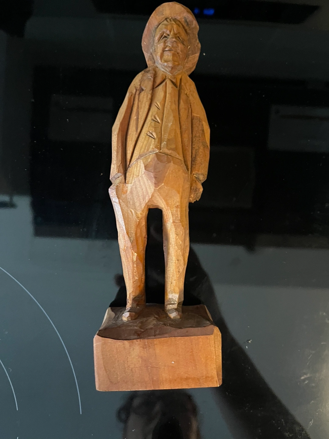 A beautiful porcelain angel cross with a glittery blue finish and a solid brass tray with a floral design. Made in India. The tray is approximately 6.5 inches in diameter. Also, wooden statues
