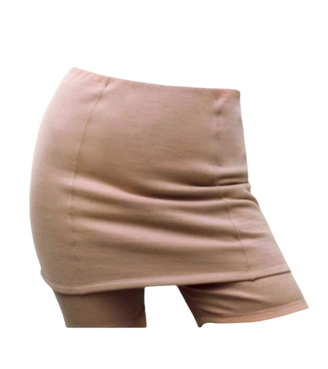 Where fashion meets multifunction. This 100% cotton, fine rib knit, biker skort has you covered. You can wear that cute, muted pink, micro mini skirt, and still feel totally comfortable because you're also wearing a built-in, matching pair of biker shorts!