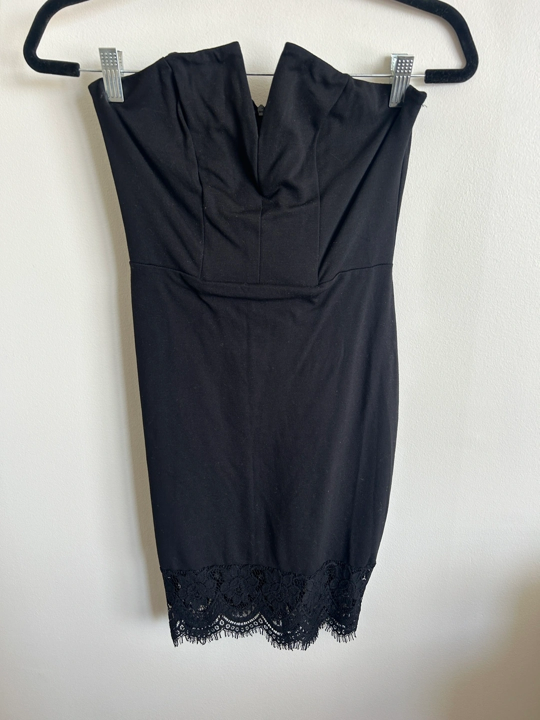 Black strapless mini dress with a lace trim at the hem. Closet clean out so check out my other stuff