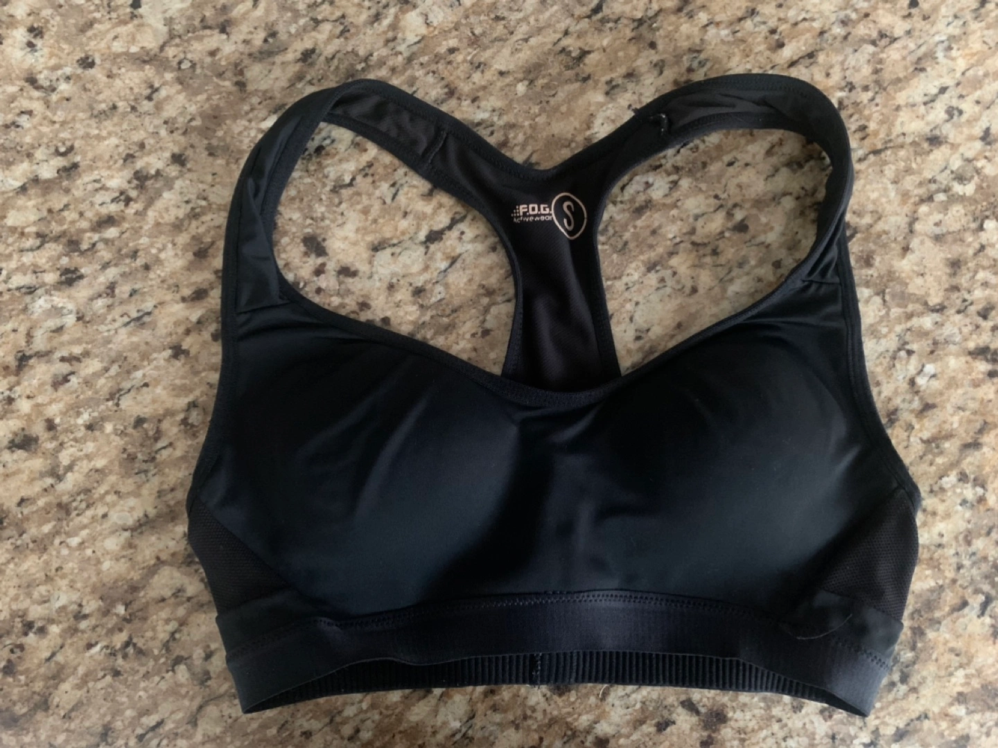 Size Small black. Lightly padded with mesh sides for breathability. This bra offers medium support.