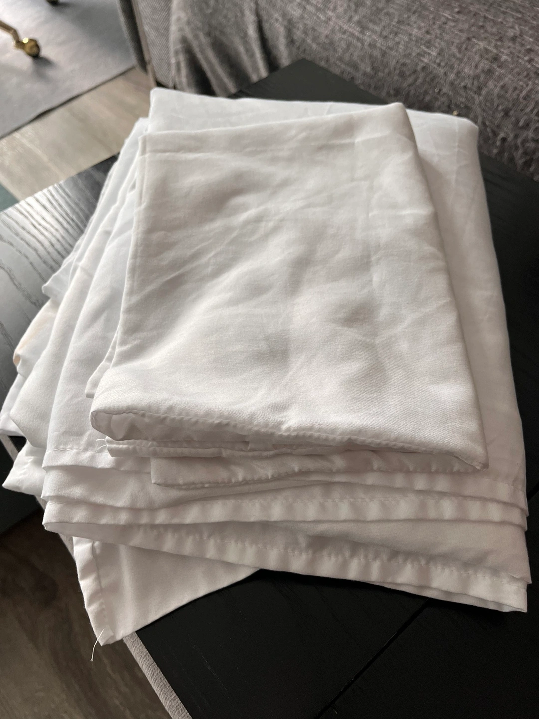 Queen size flat sheet and pillow case for free. It unfortunately has a stain that didnt go away in the wash but I am suspecting it’s derivinf from humidity as we haven’t used this for years.