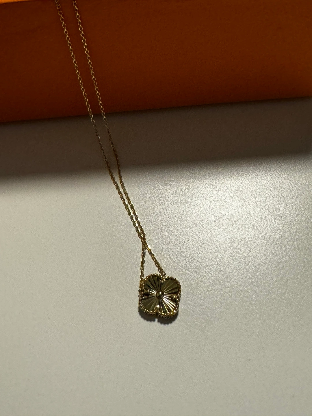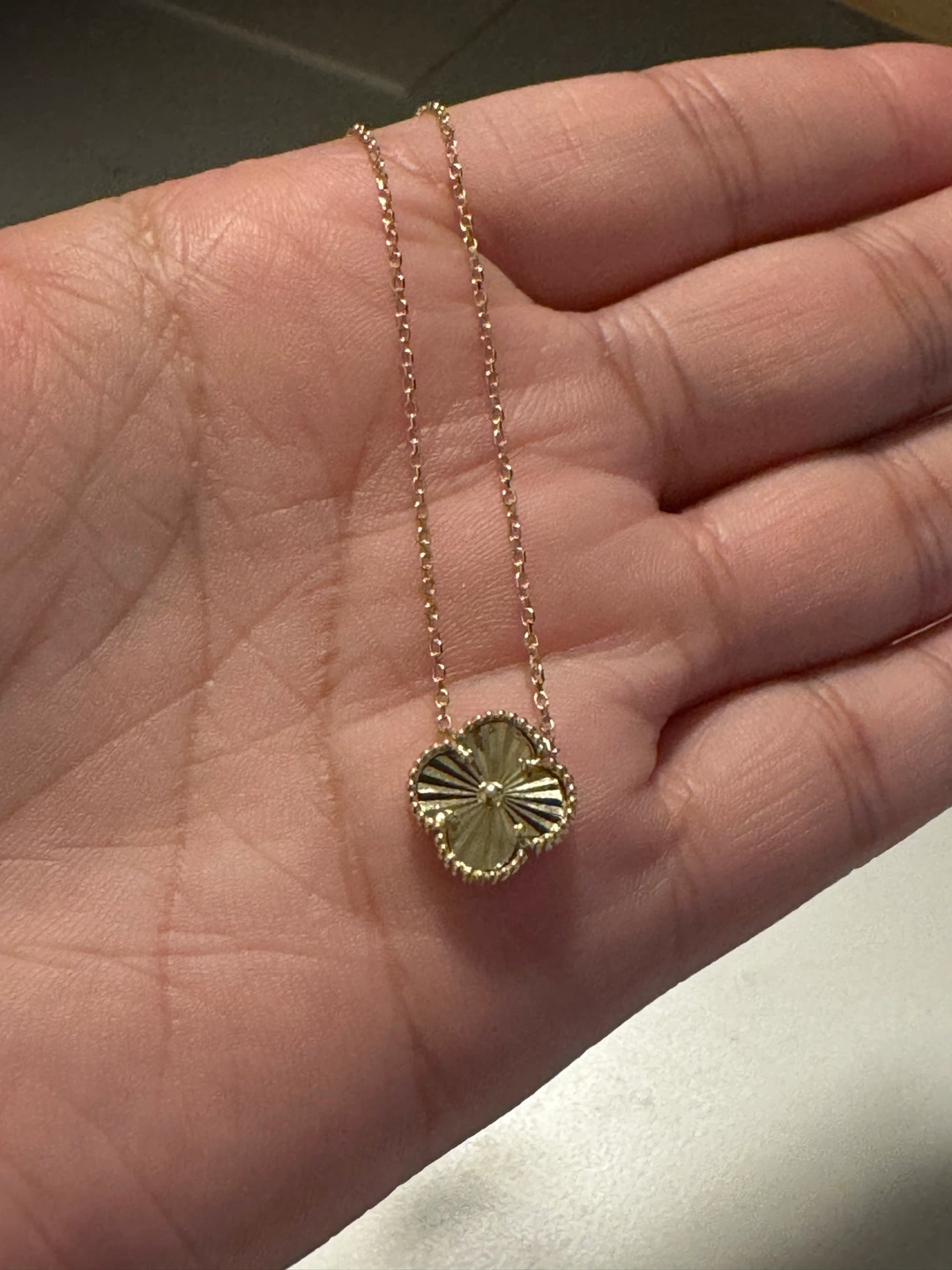 18k Gold necklace with a four leaf clover charm - vca inspired. 16-18” length.