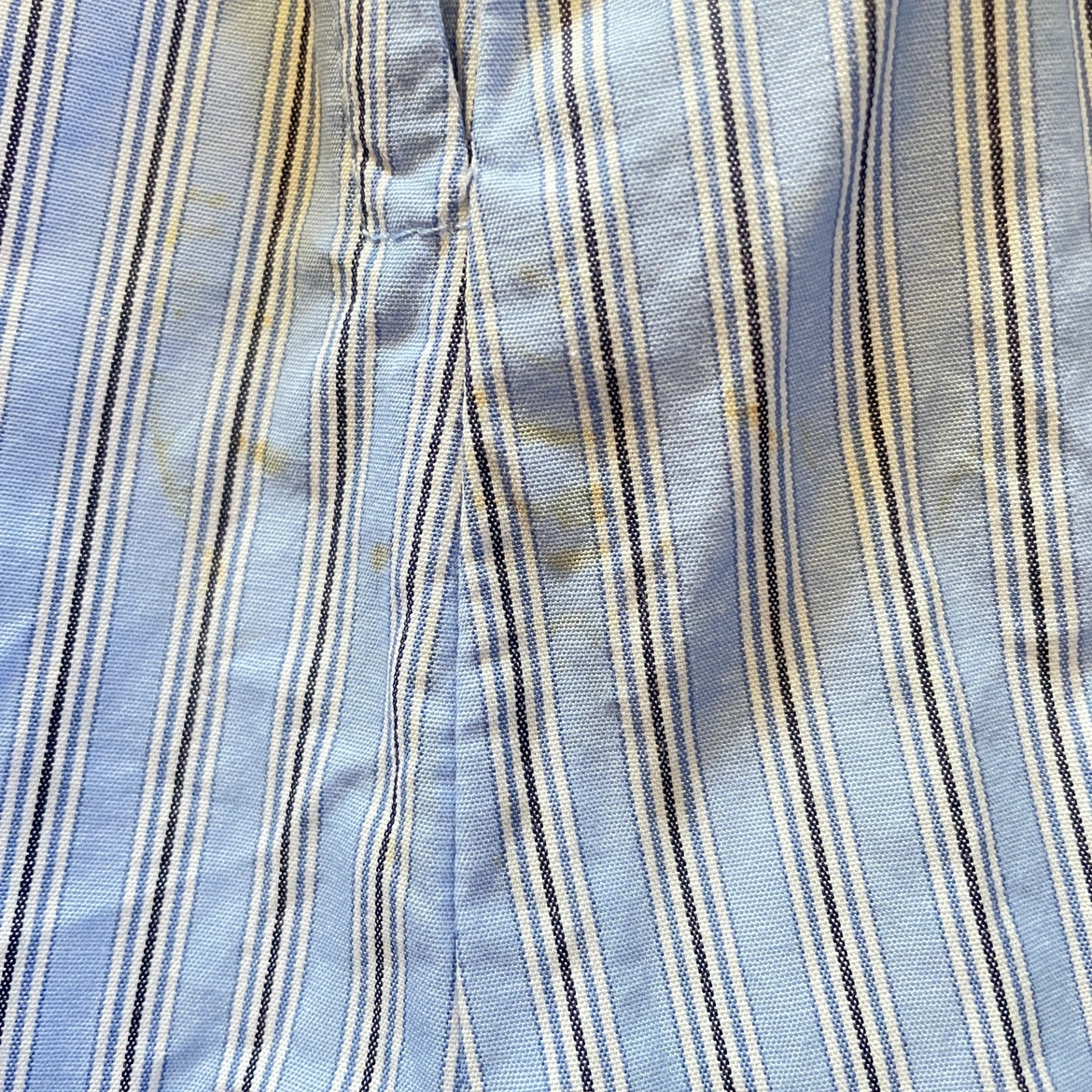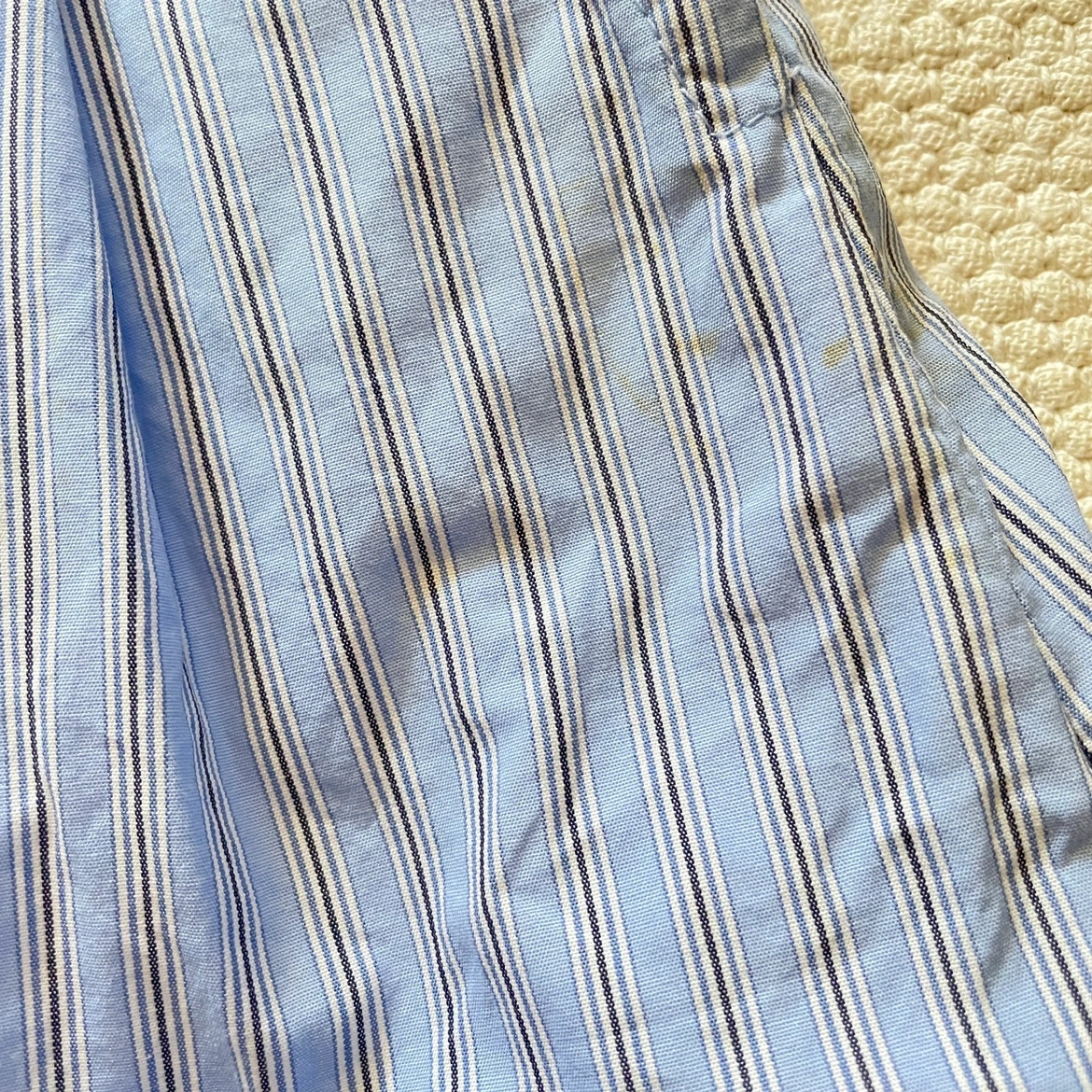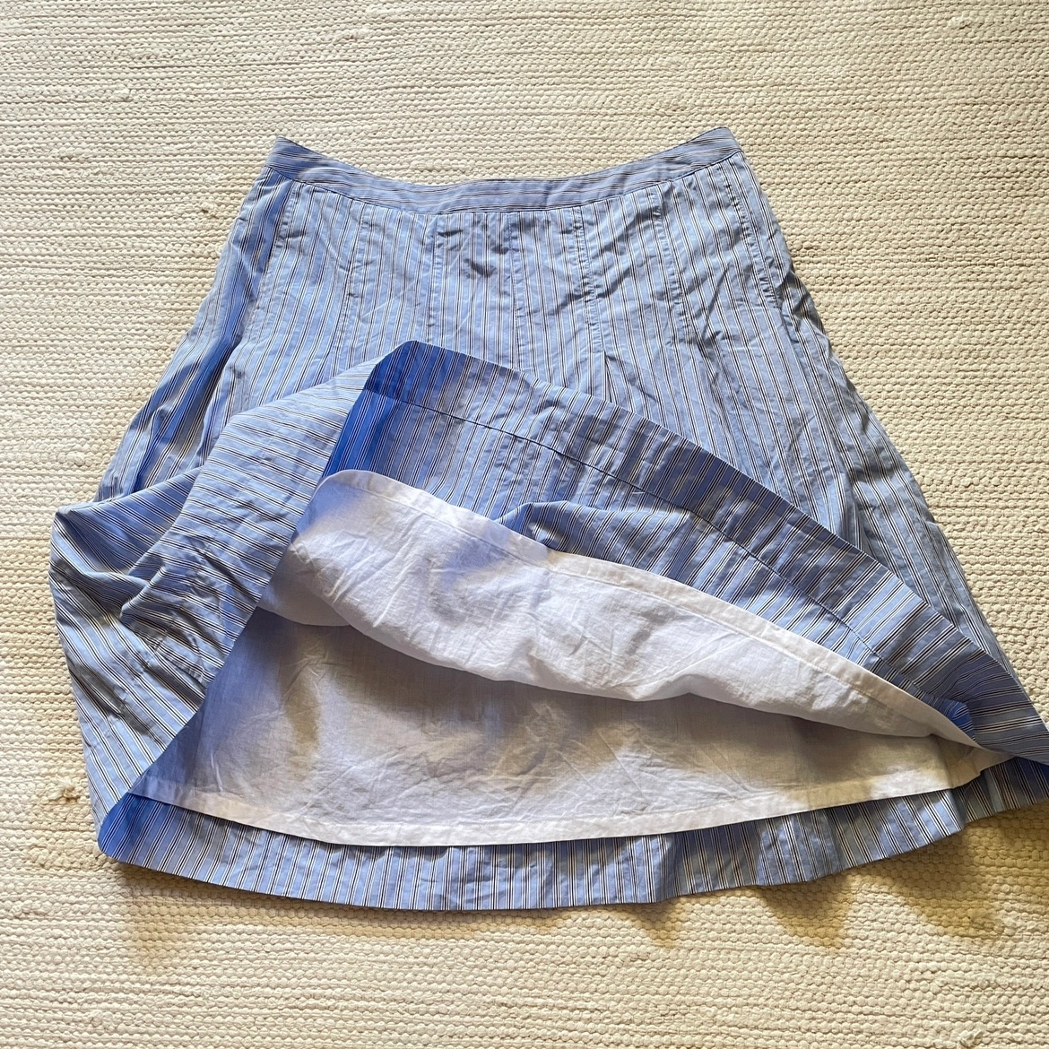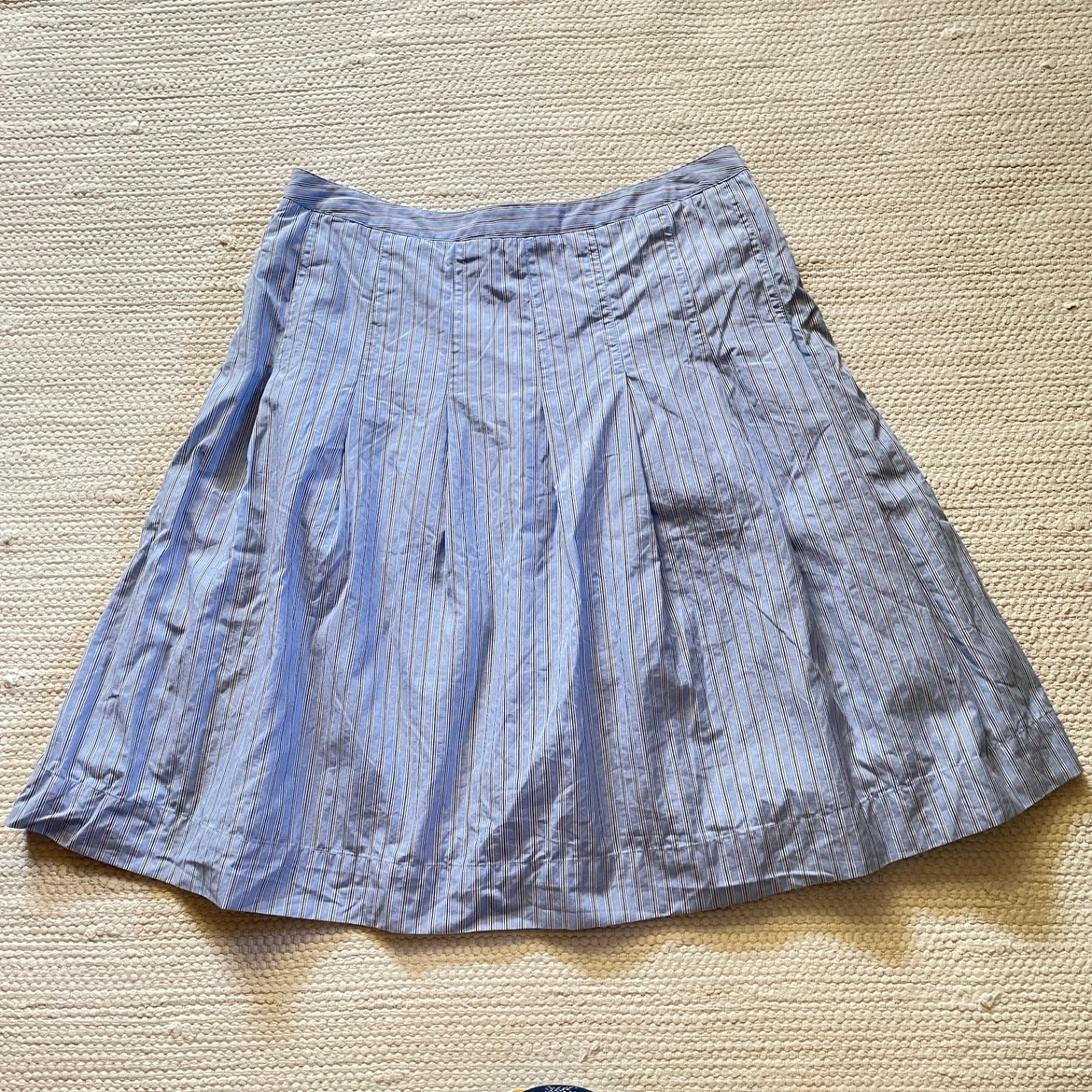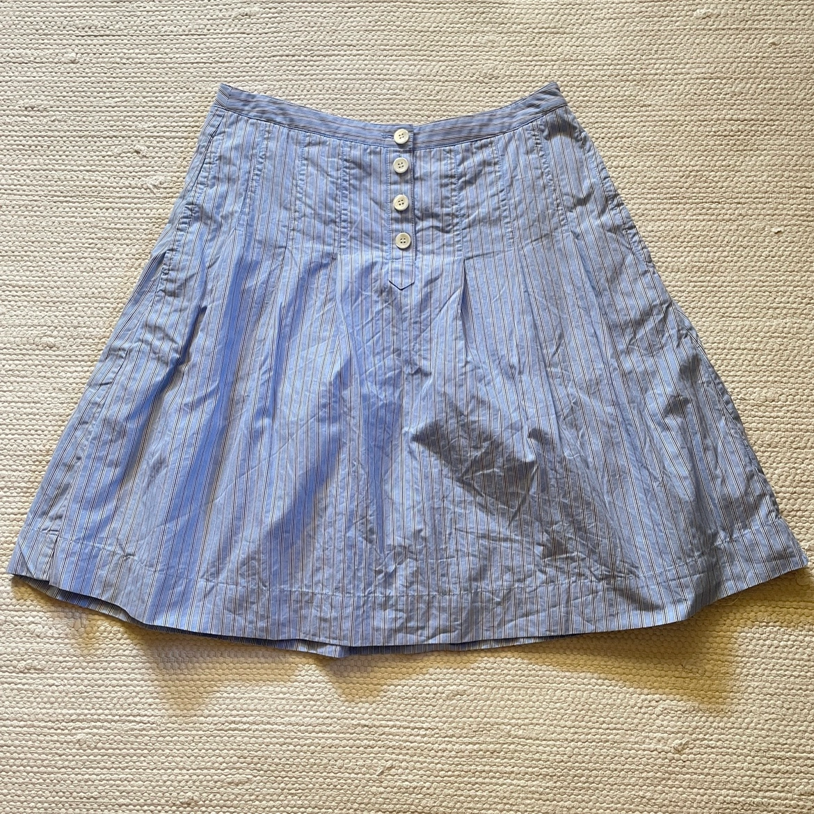 This skirt is pre-owned. It is very comfortable with 100 % cotton and lined. It also has pockets. There are some stains in the front and side (see pictures), otherwise in great condition.