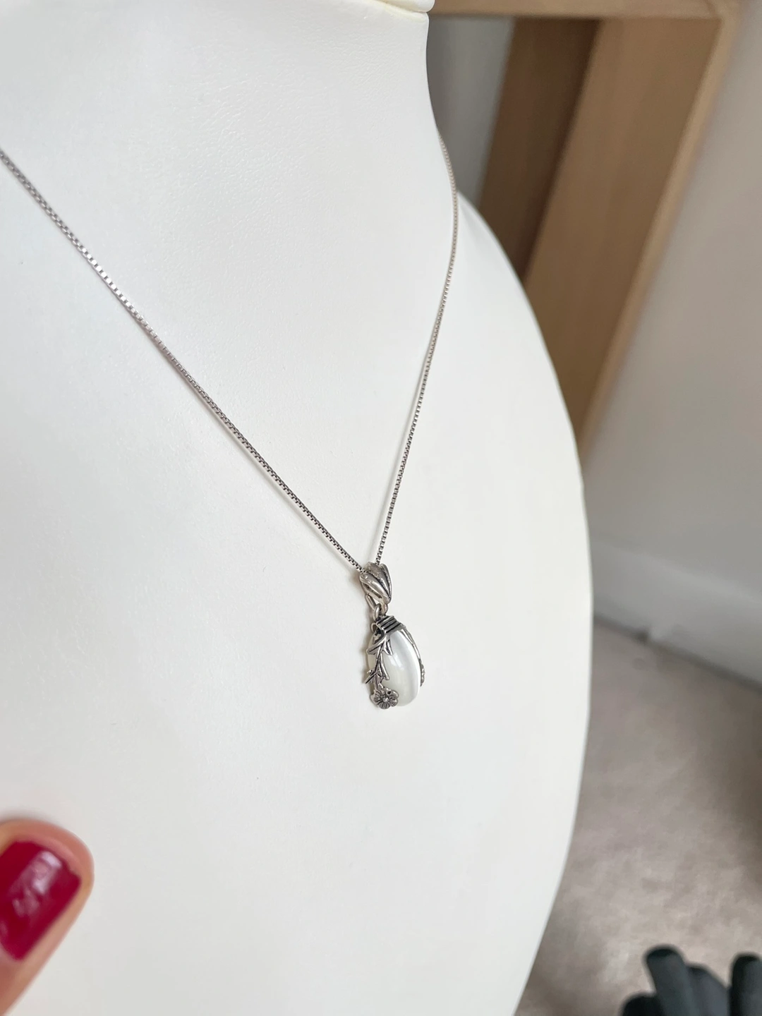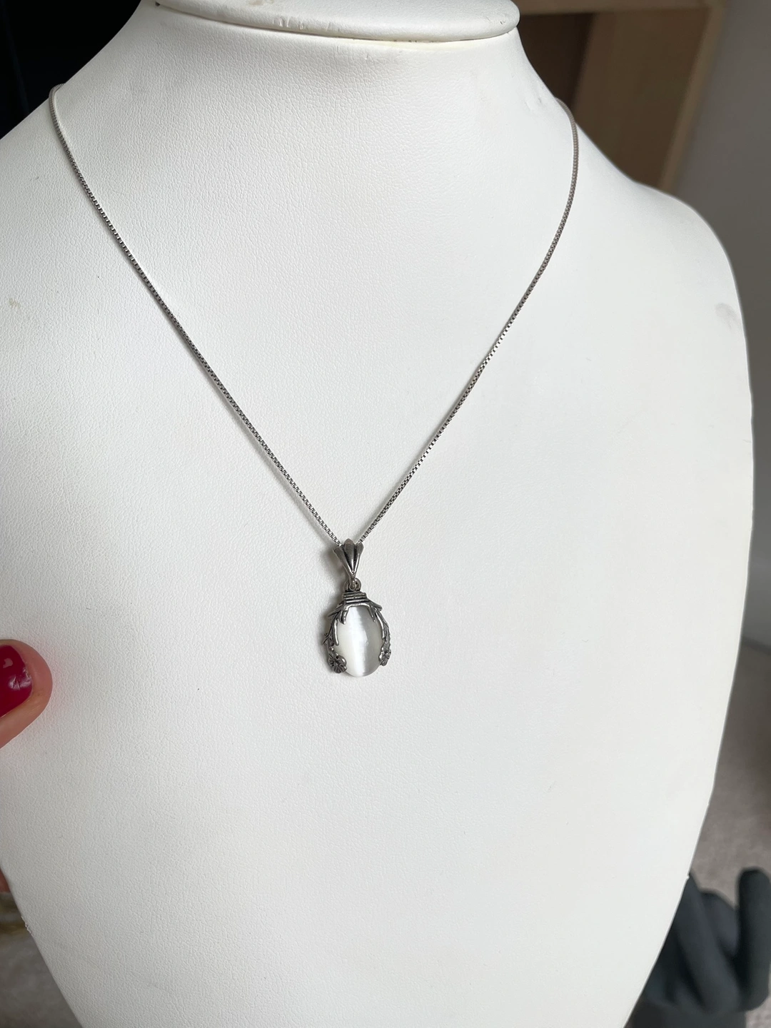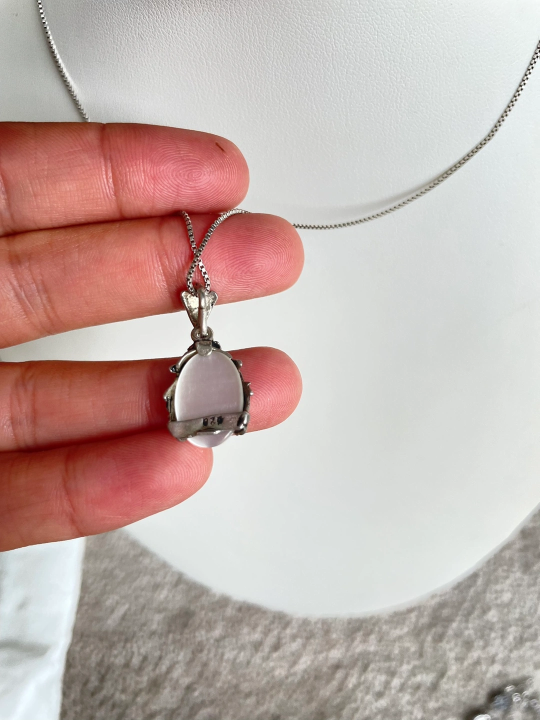 1000+The pendant is set in a silver frame with silver floral accents. Beautiful and very girly