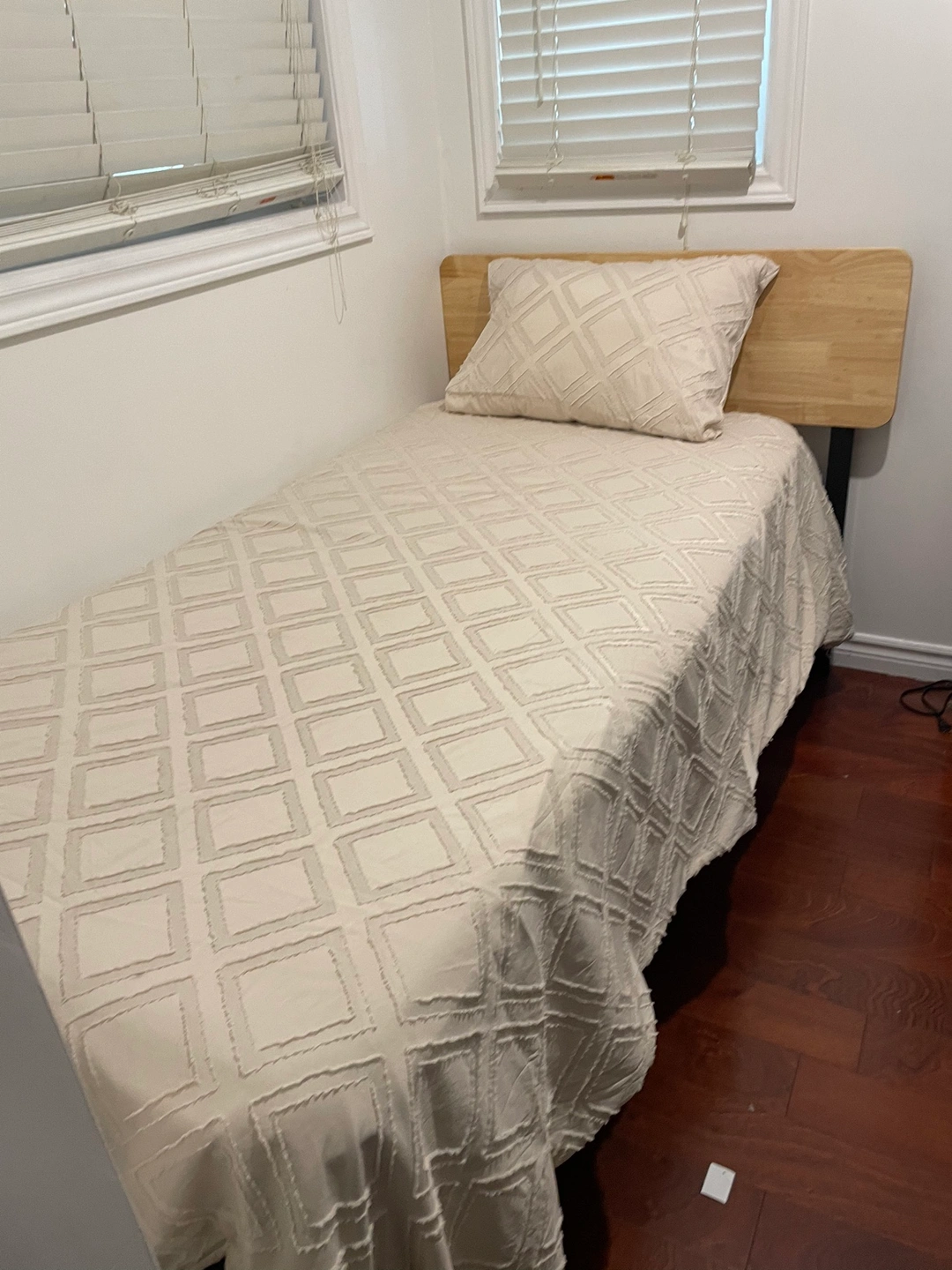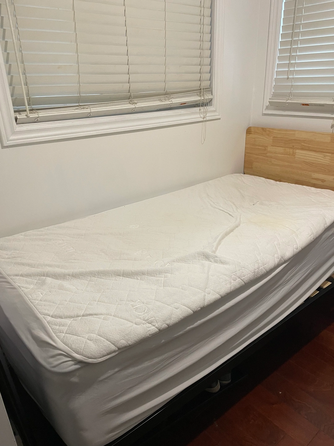 Single bed frame with headboard and mattress included. Mattress was used only a couple times always with the mattress cover mattress