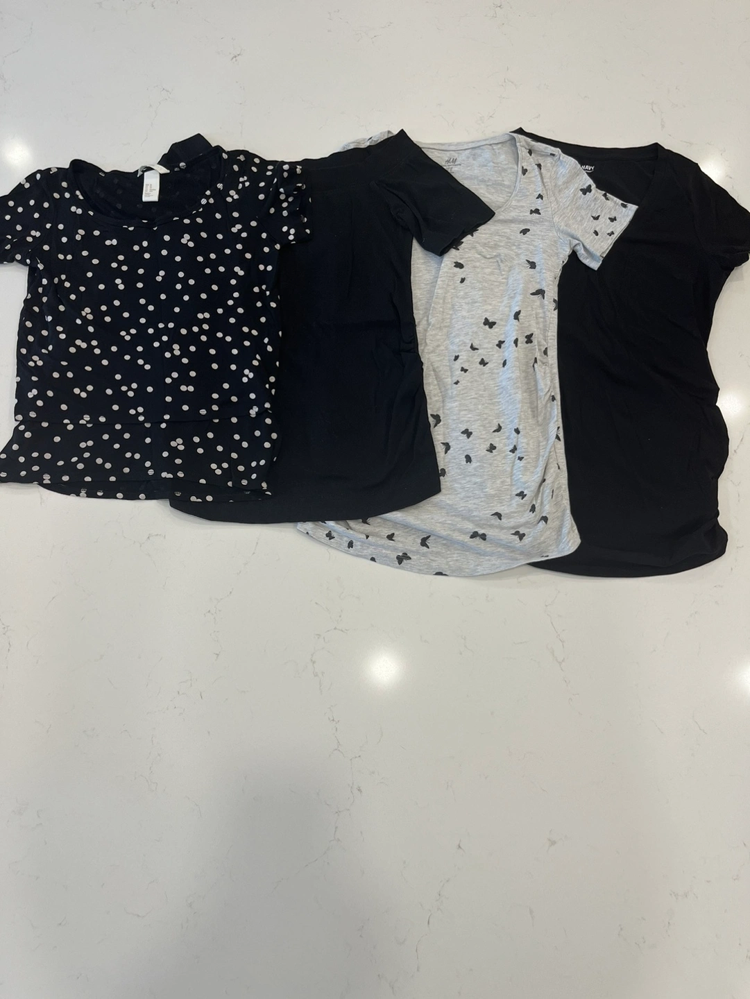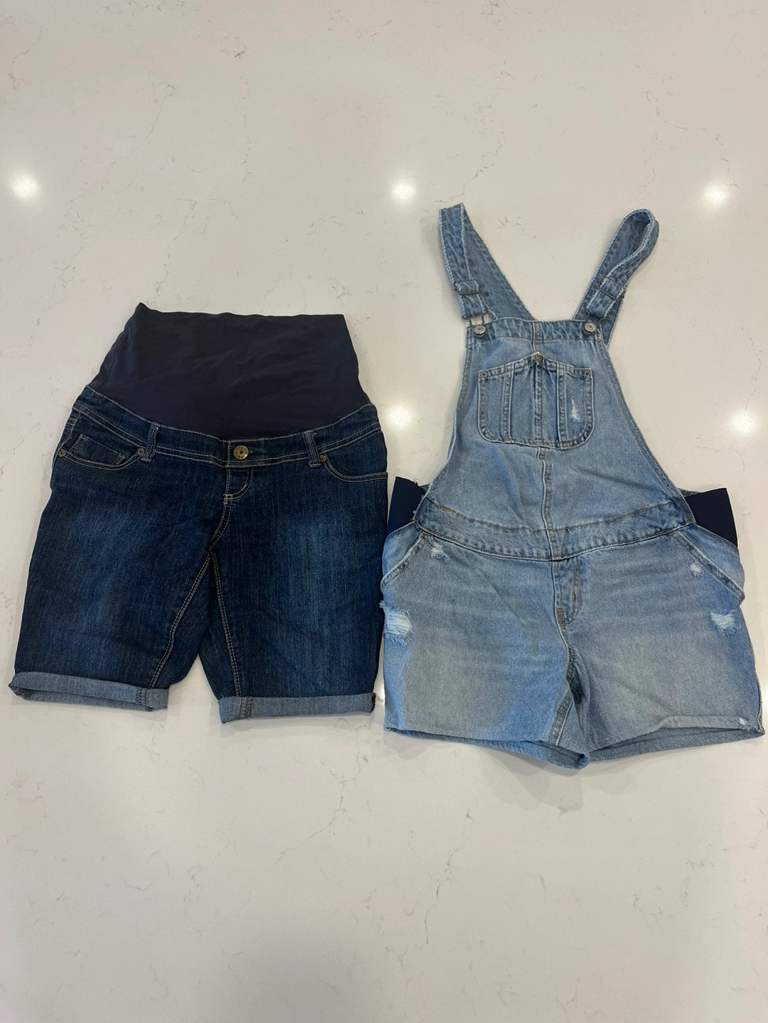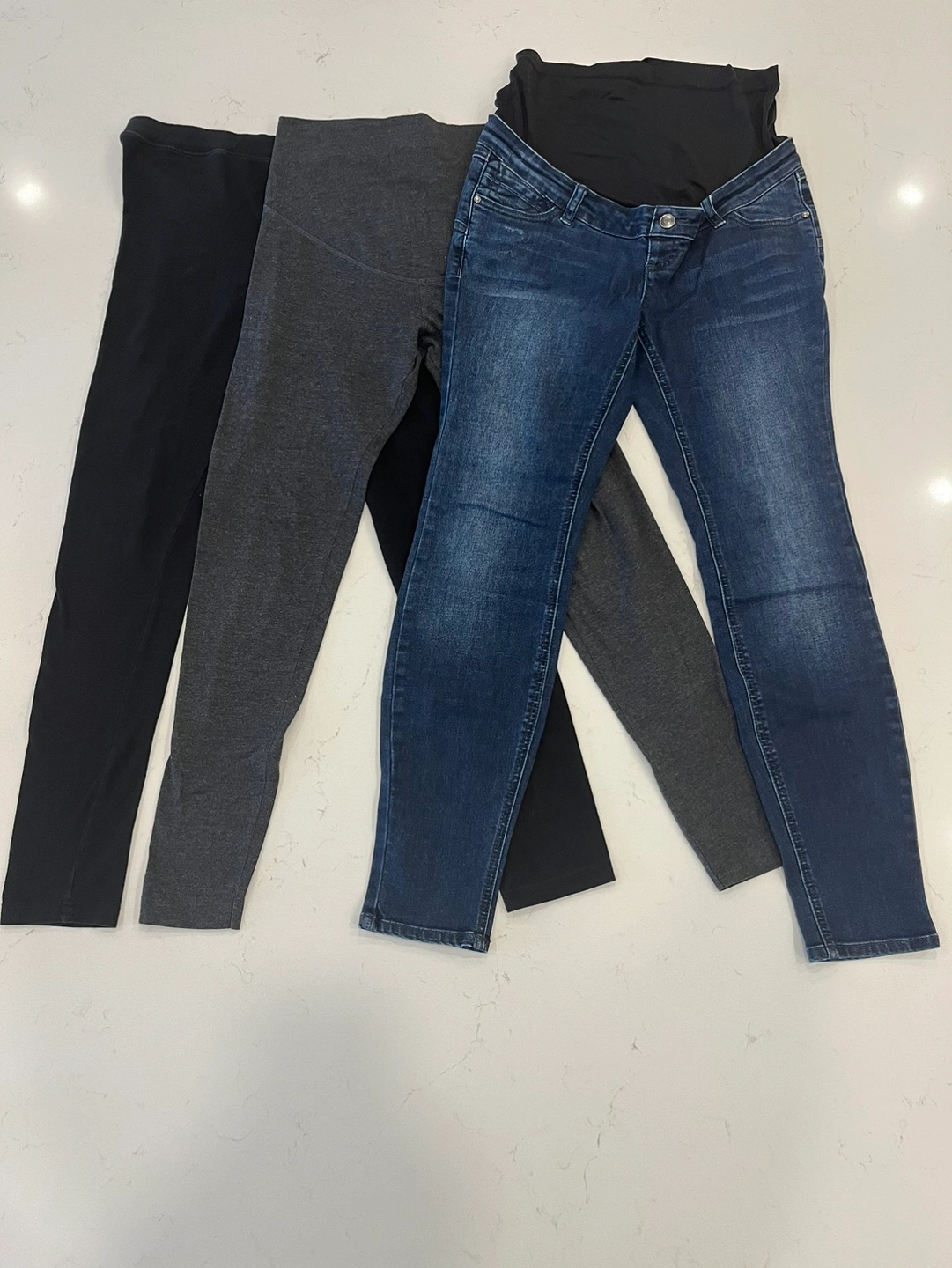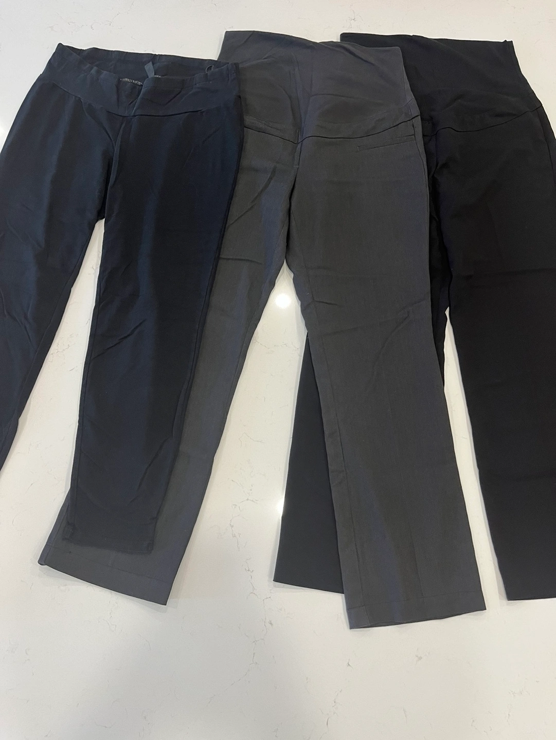 Maternity clothing bundle. As pictured: 6 blouses, 5 tank tops, 4 tshirts, 3 dress pants, 2 leggings, 1 jeans, 3 capris, 1 shorts, 1 overalls shorts, 1 bathing suit, and 2 bras.