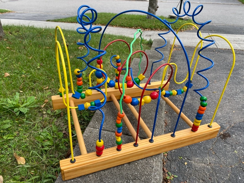 A classic wooden bead maze with colorful beads and wires. Great for developing fine motor skills and hand-eye coordination. only 1 child used. In excellent, clean, mint condition. $30 obo Jumbo Extra Large size: 24" x 15", all the other online products are tiny small and don't offer this playability.