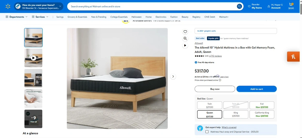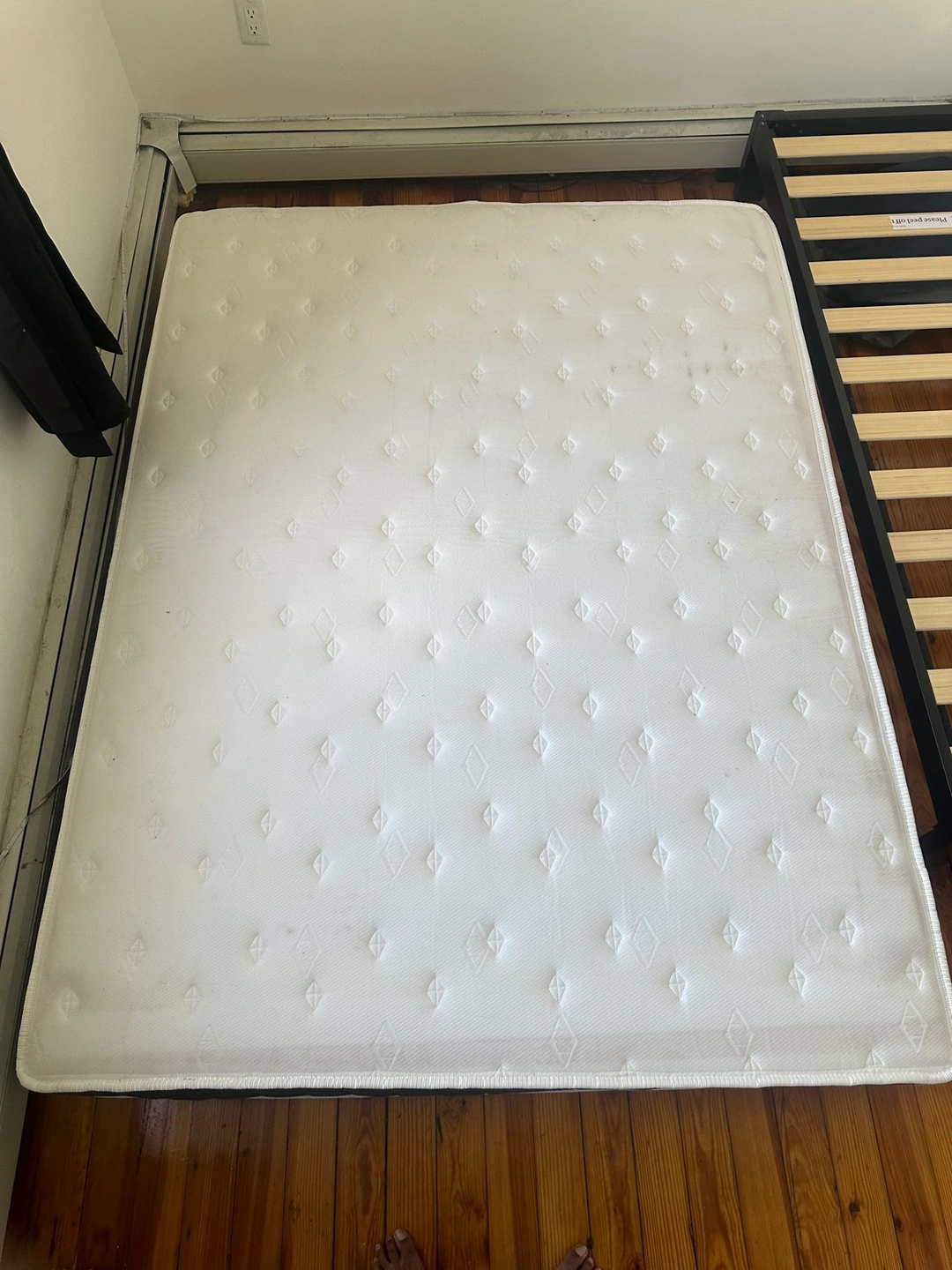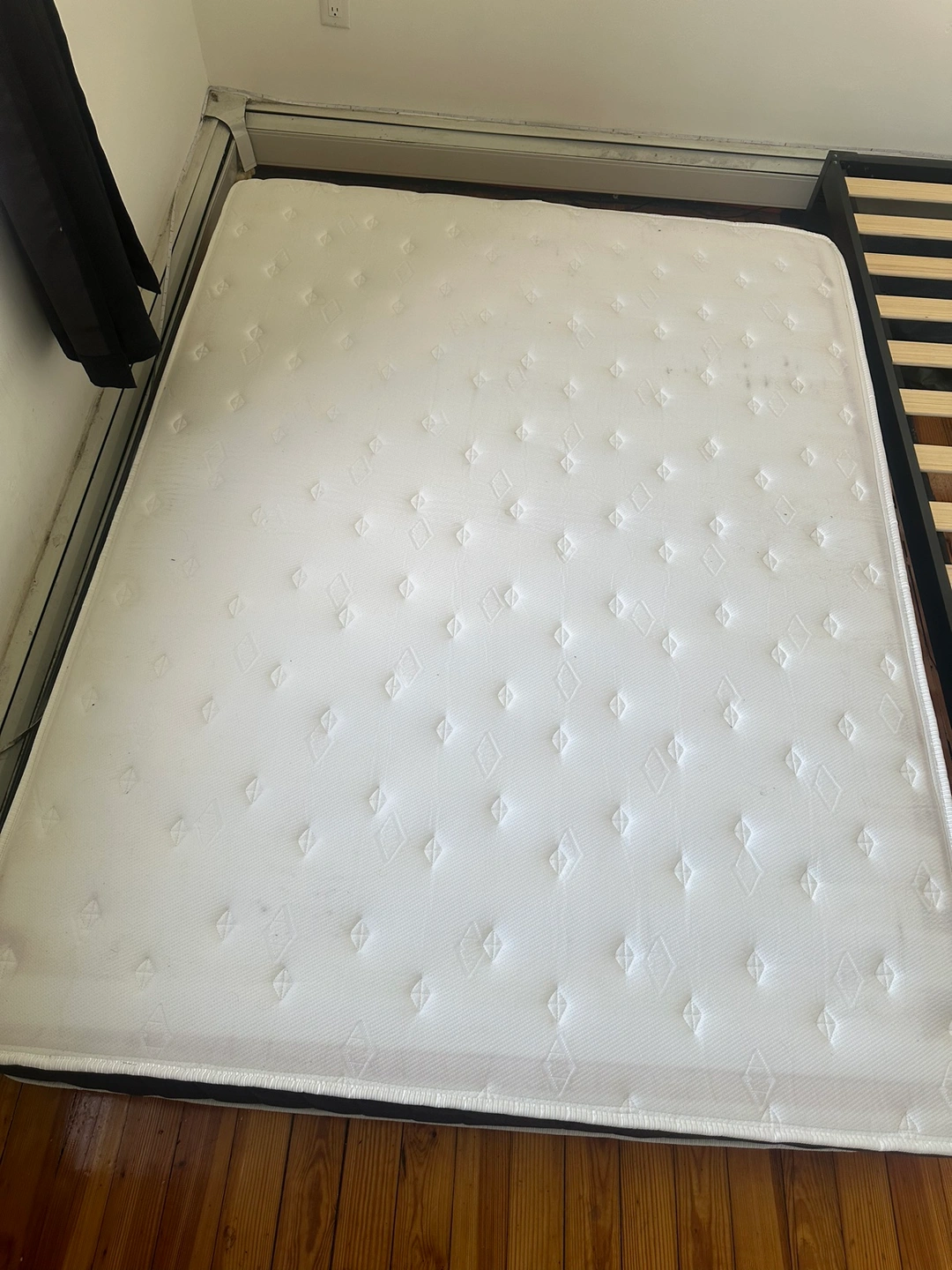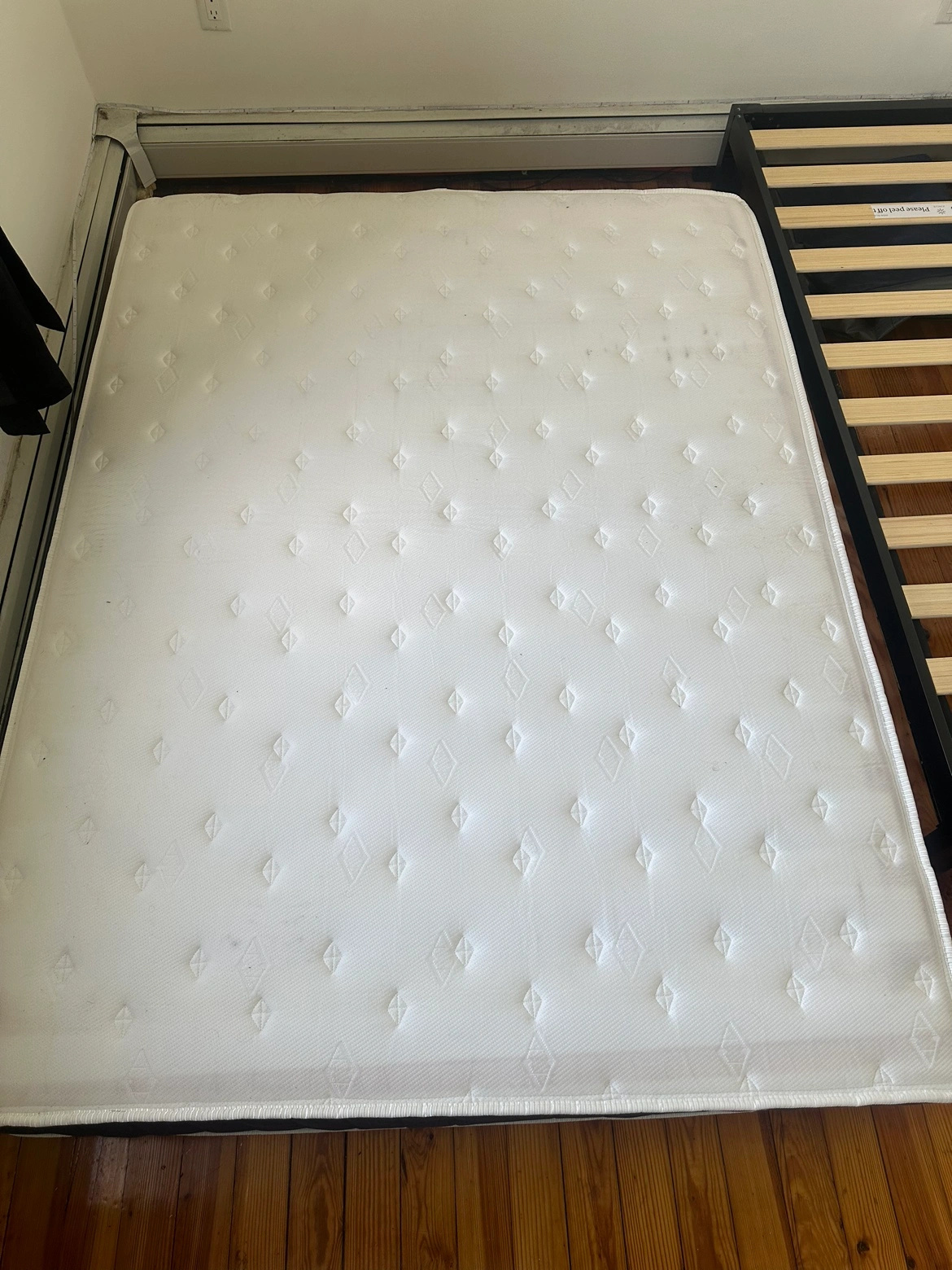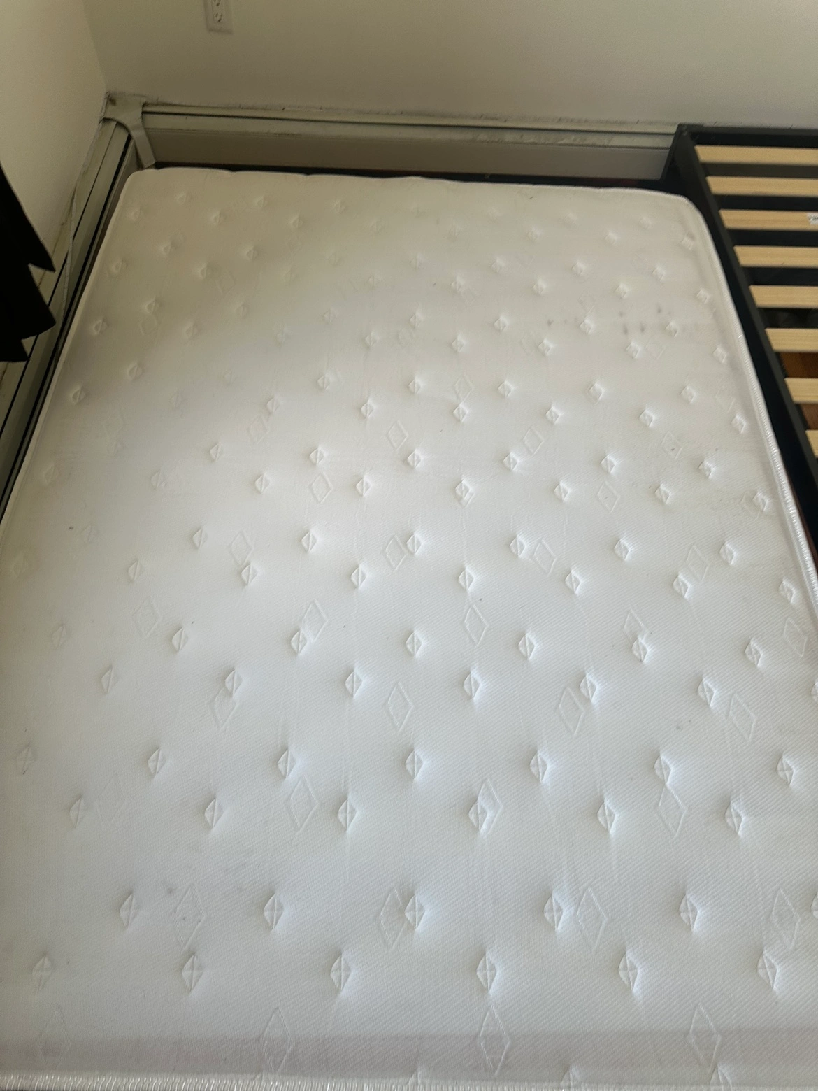 Queen size hybrid mattress from Allswell with Gel Memory Foam. It is in great condition, no stains as you can see from the pictures. I got it from Walmart for $317 a couple of months ago and selling it off before moving out.